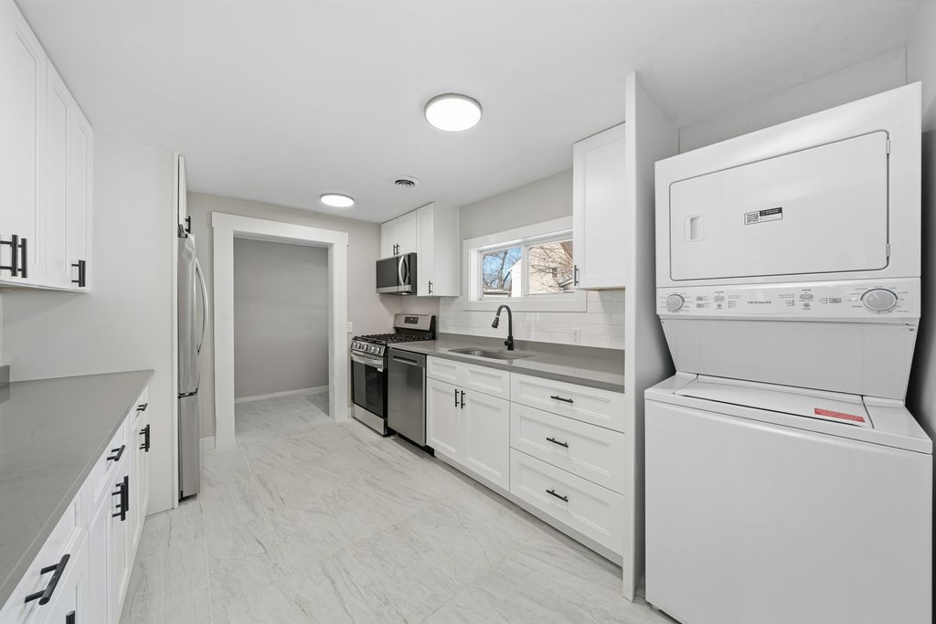 Welcome home to this fully rehabbed 2 bedroom 1 bathroom home, situated on a nice sized lot within walking distance of West Aurora High School! BRAND NEW updates include, hot water heater, carpet, quartz countertops, sinks, faucets, fixtures, electrical, tile floor, custom cabinets, washer/dryer combo, LG appliance package, doors, paint, & a fully rehabbed bathroom! Plenty of space for storage in the partial unfinished basement. Home has a fully fenced in backyard with a nice fire pit, 2 car garage, & plenty of space in the large front & backyard for entertaining! Amazing price, location, & nothing to do but move in & enjoy!