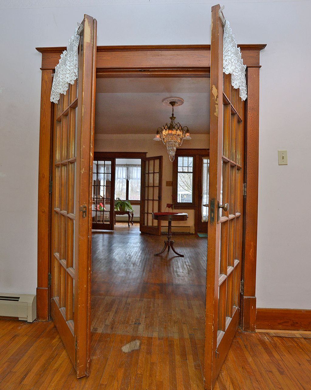 Welcome home to this charming one-story, three-bedroom, one-bathroom ranch bungalow ideally located within walking distance of downtown Utica's shops and dining, just minutes from Starved Rock State Park, and with easy interstate access for commuters. The inviting living room is filled with character, featuring a gas fireplace, original hardwood floors, and beautiful light fixtures. Off the living room is a heated sunroom with lovely French doors -- an ideal spot to enjoy your morning coffee, curl up with a good book, or, as it has been for the sellers, a favorite play space for kids and grandkids. The formal dining room offers another cozy side porch perfect for relaxing and includes a convenient pass-through to the charming kitchen, creating an open and connected feel without sacrificing defined spaces. The kitchen offers ample cabinetry and a vintage stove, adding to the home's timeless appeal. Just off the kitchen, a mudroom with pantry storage leads to the backyard and a one-car detached garage. The main level is completed by three spacious bedrooms with generous closets and a roomy bathroom currently featuring a tub, with plenty of space to create your dream bathroom. Throughout the home you'll find historic millwork and original hardwood floors, which were protected by carpeting for many years and have just been uncovered. The solid, unfinished basement offers excellent potential for future living space and includes a built-in bar custom designed for the space, a safe with combination, a shower, and multiple storage rooms. Full of charm, space, and lasting quality, this well-built home has truly stood the test of time and is ready for its next chapter -- perfect for anyone who loves strolling to the library, enjoying downtown dining, or unwinding after a day of hiking the nearby parks.