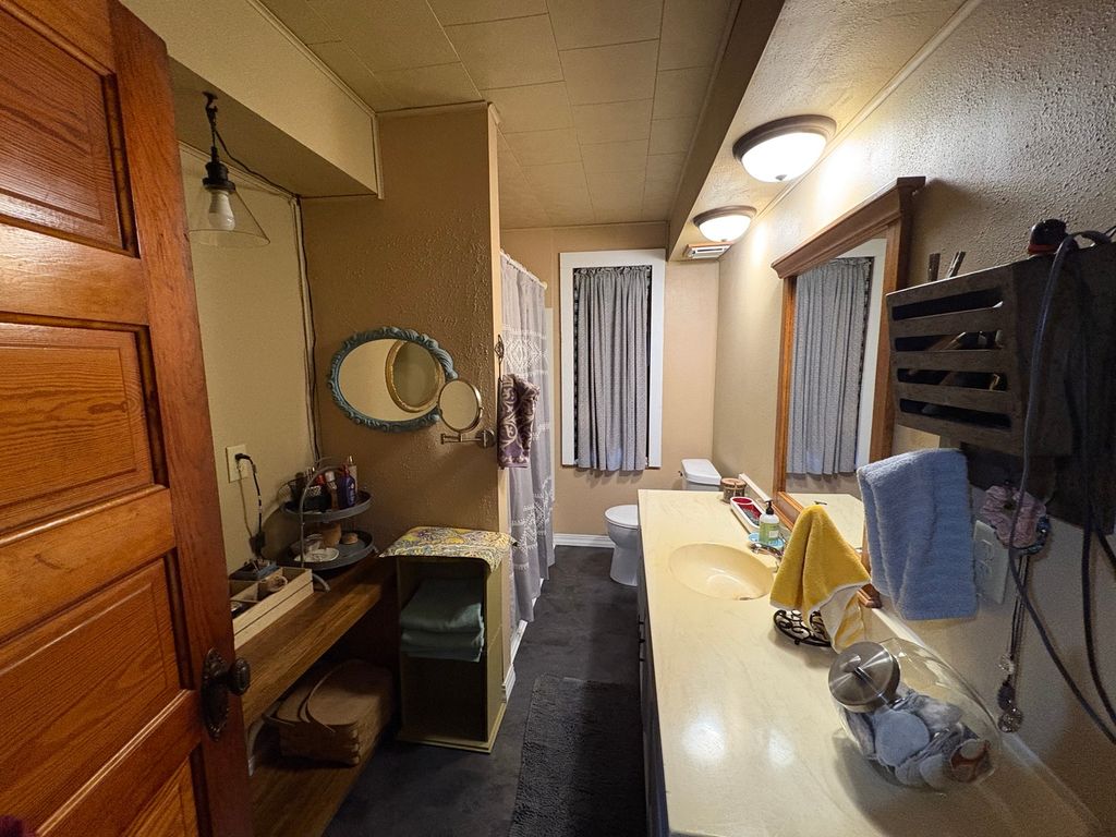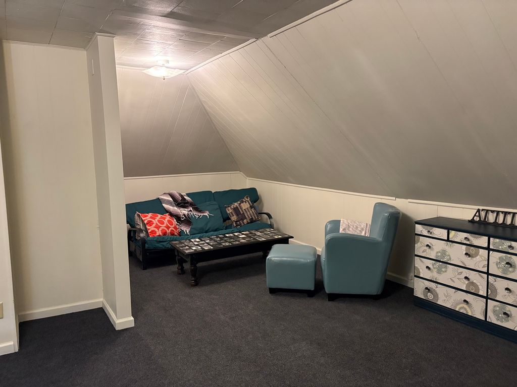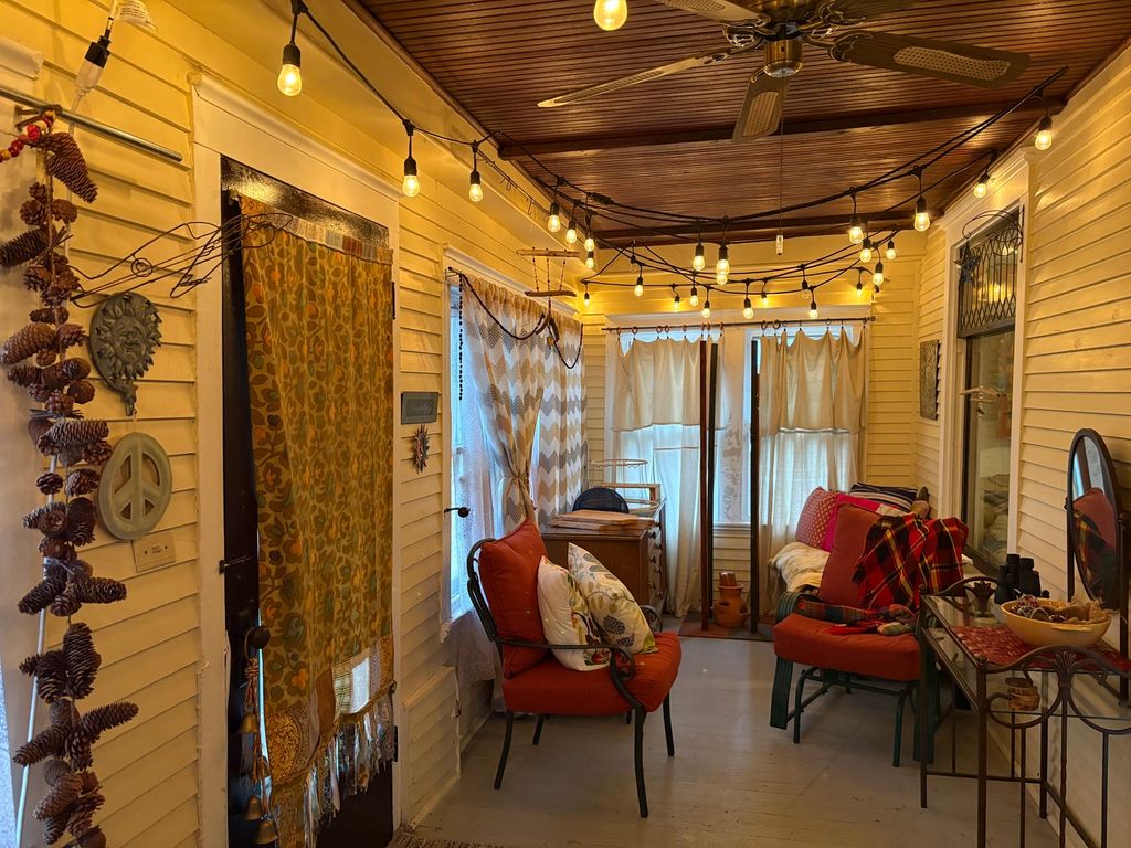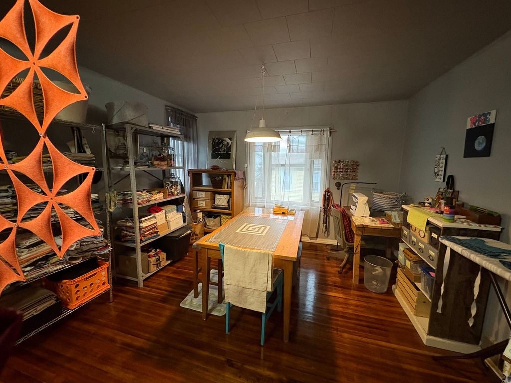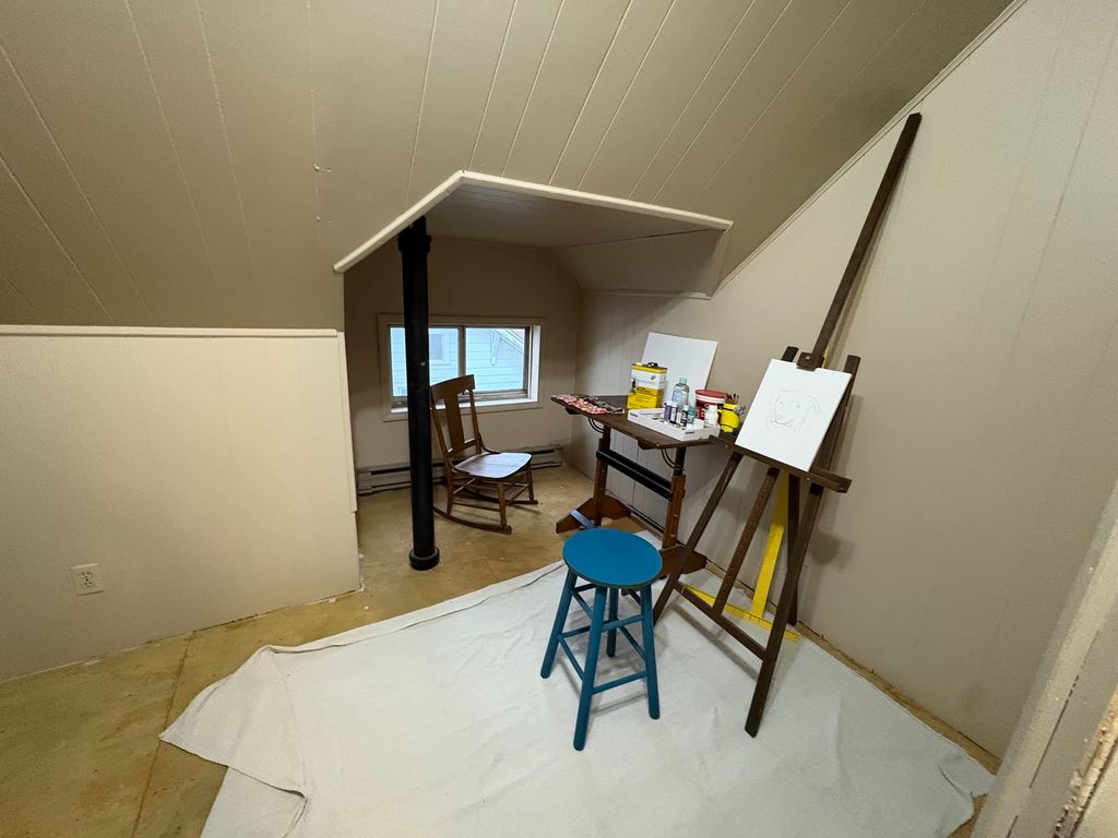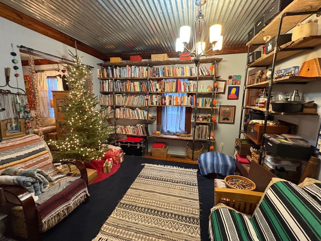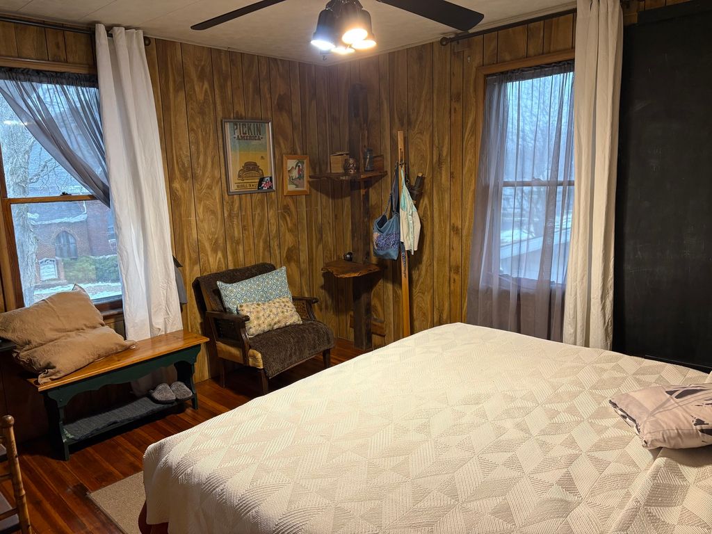 Charming 2 Story 4-5 bedrooms, 2 Full baths. Appealing landscaped yard leads to 7x6 enclosed front porch. Opens to nice dining room with wood burning stove. Country kitchen has ample cabinets. Cozy living room. Spacious room being used as a library, can be another 1st floor bedroom. Main floor Primary bedroom with bath. Full basement with many possibilities. Beautiful open Stairway leads to 2nd floor with 3 nice bedrooms and laundry room. 3rd floor with spacious living area, bedroom and craftroom. Home offers leaded windows, etched glass and beautiful original woodwork. Back enclosed porch leads to a larged fenced in yard. Newer roof. Nice 2car garage with spacious concrete parking area. 66x162 lot. A must see ! Call for a showing today.