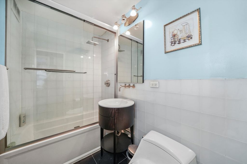 This sophisticated corner condo is an ideal full-time residence or perfect pied-a-terre in the heart of Streeterville. Located in an intimate boutique elevator building with only four units per floor, this 2-bed, 2-bath home features a spacious primary suite with hardwood floors and excellent closet space. The second bedroom offers flexibility for guests, a home office, or a cozy den. The modern Euro-style kitchen showcases Poggenpohl cabinetry, sleek glass accents, and premium KitchenAid and Liebherr appliances. Eco-friendly bamboo flooring flows throughout, complementing the home's clean, contemporary design. Both bathrooms are finished with imported porcelain tile and stylish modern vanities. Each room includes its own heat and A/C control, ensuring personalized comfort year-round. Building amenities include a 24-hour doorperson, sundeck with lake views, receiving room, storage lockers, bike room, and on-site laundry. Monthly assessments cover premium cable, gas, heat, A/C, water, and more-offering exceptional value. Pet-friendly with a limit of two pets per unit. Perfectly situated just steps from Lakeshore Park with tennis and pickleball courts, outdoor fitness equipment, and a running track. Close to Oak Street Beach, the lakefront trail, Michigan Avenue shopping, world-class dining, entertainment, and Northwestern's campus. A refined, low-maintenance home in one of Chicago's most coveted neighborhoods.