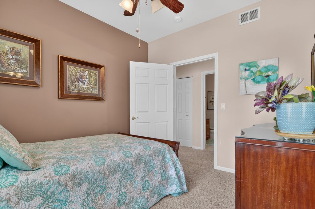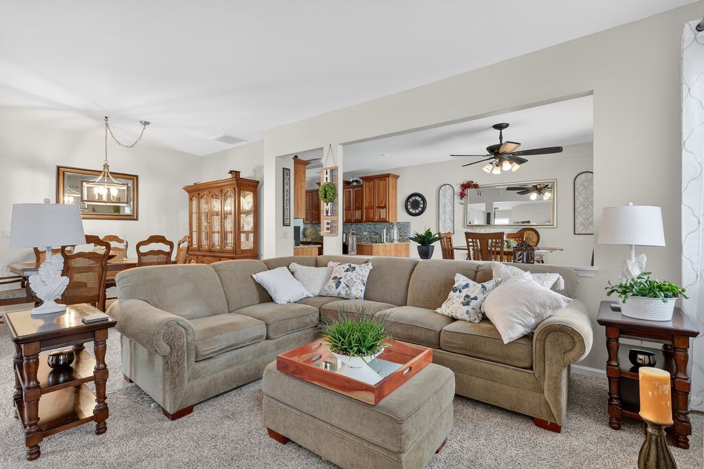 Welcome to this beautifully updated and freshly painted Scottsdale end unit ideally situated overlooking a pond and golf course in this highly sought-after 55+ community.This light filled 2 bedroom 2 bath residence with a spacious den offers serene views overlooking the pond and golf course, creating a peaceful and picturesque setting. The sunsets are amazing. The desirable end unit provides added privacy and abundant natural light throughout. The thoughtfully designed floorpan features a generous living, kitchen and dining area, perfect for entertaining or relaxing along with a versatile den ideal for a home office, reading room or a guest room. The primary suite includes a private bath and ample closet space, while the second bedroom and bath are perfect for guests. Fresh neutral paint gives the home a crisp, move in ready feel. Enjoy maintenance free living with access to Carillon's exceptional amenities, including clubhouse, 3 pools, fitness center, walking paths. Golf course is not included. All within a secured gated community. Furnace & CAC 2016, appliances 2015, Gilkey patio door 2022, Roofs 2019. Don't miss this opportunity to own a premium Scottsdale end unit in one of the most active adult communities.