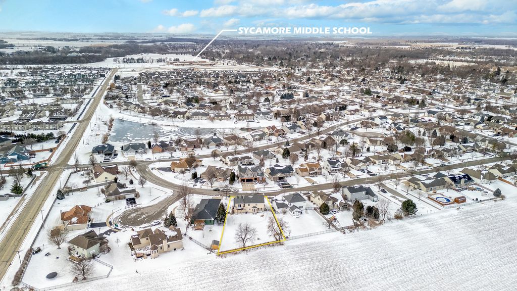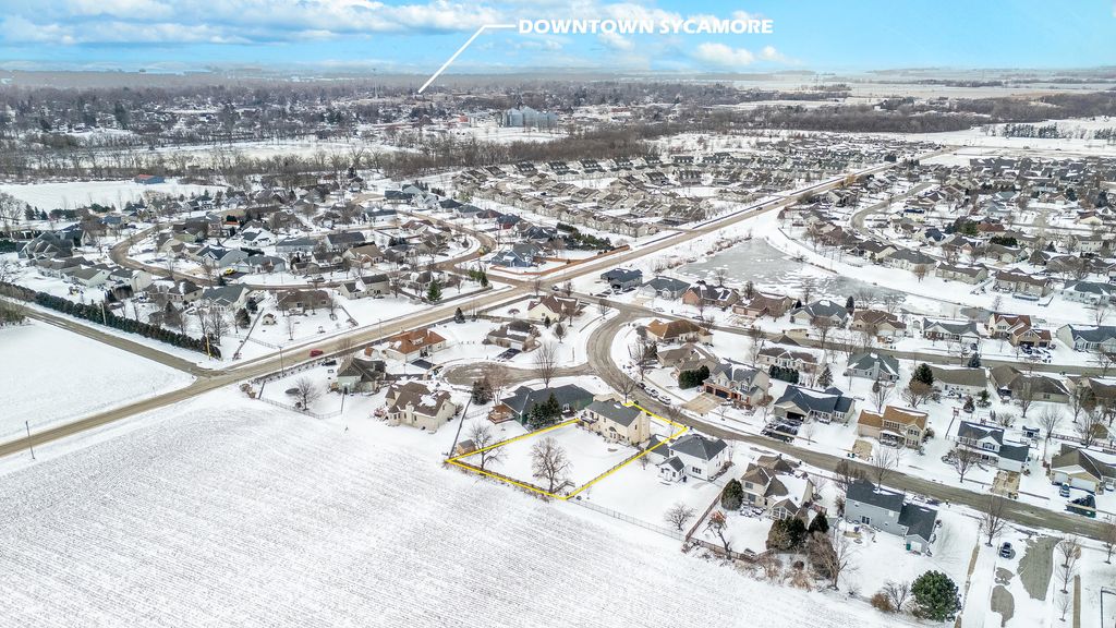 Welcome home to this enchanting 4 bed, 3.5 bath modern Georgian home built by Boyer & Sons in the ever loved Townsend Woods subdivision in Sycamore! As you approach the home you'll notice the perfectly symmetrical design of the facade; windows evenly spaced apart and a prominent front entrance framed by elegant pillars. Brick contrasted with subtle yellow and white are classic with this design. A 2.5 space heated garage is attached. Upon entering this home, you'll remark that the beautiful columns are reintroduced as you enter the formal dining room, adorned with crown moulding and wainscotting atop gleaming hardwood floors. Style looks effortless in the classy kitchen. Antiqued beveled cabinets with vintage style drawer pulls and knobs showcase timeless style. The cabinets also feature 2 upgraded glass faced cabinets for display. The range hood fits in perfectly with the whole aesthetic. Complemented by stainless steel appliances, counterspace with a recessed sink and a granite topped island, the kitchen is warm and inviting, perfect for the home chef. The kitchen also offers table space with lots of views of the back and an entrance to the backyard should you decide to take your coffee outside on the patio. Attached to the kitchen is the spacious living room which offers warmth and relaxation along with a centralized fireplace and mantle perfect for the holidays! A darling pocket door separates the living room and foyer! Upstairs enjoy the new carpet (throughout) and wander into the primary bedroom. Vaulted ceilings, a private fireplace, and a walk in closet are offered in this perfect room. Solid 6 panel hardwood doors are common throughout the home including the closets! The primary bath (newly updated in 2018), showcases a roomy shower with subway tile surround, updated lighting, hardware, and a gorgeous double vanity. Outside the primary sits a full bath for guests or family and two spacious bedrooms. Down the hall a bit is the fourth bedroom (17x30) which offers its own private balcony overlooking the backyard with its gorgeous views. This room could serve as a majestic bedroom or could be set up as an entertainment area! The possibilities are endless! The finished basement (2018) has an open main area that could serve as extra living space or a playroom. It offers a full bath as well! An office with a tandem room juts off the main area. This would serve perfectly for those who work at home. The tandem room could potentially be used as a sewing room or craft room or even just for clean storage. For great views you'll want to head outside to the back yard. Open farm fields and big skies will greet you! Updates for this home include: a new roof (2025), new dishwasher, new washer, new dryer, new carpet, new landscaping, new blinds and driveway resealed (2024), as well as, a finished basement and a primary bath rehab (2018). Sycamore schools (North Grove elementary) close to I-88, shops, restaurants and dining. This beauty offers a cozy, warm vibe and is sure to make any new homeowner happy! Come see this beautiful home for yourself!