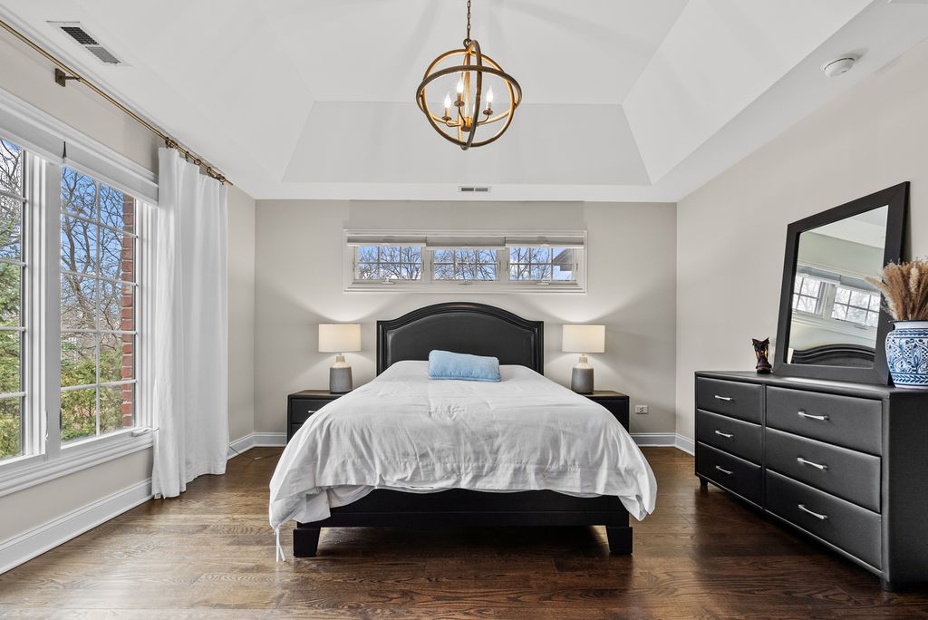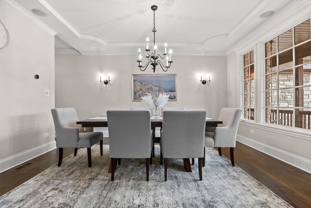 Extraordinary custom home - situated in highly sought-after Bunratty Estates of Orland Park - is the definition of refined luxury and timeless design. Truly impeccably maintained, this home offers the look and feel of quality new construction. Stunning brick exterior, enhanced by custom stonework, a full paver driveway, and a beautiful covered front porch lead you to the custom front door, which opens to a dramatic two-story foyer. The living room is awe-inspiring with oversized windows bringing in the beauty of the outdoor landscape. The spacious dining room exudes elegance and features a tray ceiling. Throughout the home, there are wide knotted hardwood floors, 10-foot ceilings on the main level, designer lighting and high-end finishes that reflect thoughtful craftsmanship and superior quality. Every space feels intentional and welcoming in this home! The gourmet kitchen features custom white cabinetry, quartz and quartzite countertops, a large center island with sink, a walk-in pantry, and an exceptional suite of premium appliances including a Wolf range, large Sub-Zero refrigerator, built-in Miele coffee system, wine refrigerator, warming drawer and new Bosch dishwasher (2025). The adjoining breakfast room is light and bright with a patio door to a lovely backyard retreat. The family room is warm and inviting with a statement stone fireplace and tray ceiling - perfect for everyday living and entertaining. The very spacious main floor office is also suitable for a 6th bedroom! A large, well-designed laundry room with sink and abundant cabinetry, along with a separate spacious mudroom with access from both the garage and front porch, provide everyday functionality. A grand staircase with wrought iron railings leads to the second level, where all five bedrooms are spacious and feature hardwood floors. The primary suite is a private sanctuary with two walk-in closets including a California Closet, and a luxurious spa-inspired bath with vaulted ceilings, double vanity, oversized walk-in shower and freestanding soaking tub. Two additional bedrooms share a beautifully appointed attached bath, each with their own separate vanities, with one offering an exceptionally large bonus room ideal for even more storage, additional living space, den and more. Another bedroom features vaulted ceilings and a private en-suite bath. A convenient 9' x 5' hall closet completes the upper level. The full basement, with rough-in plumbing for a full bath and direct access to the heated garage (also equipped with a Tesla charger that is included), offers endless possibilities. Additional features include: dual HVAC systems, Nest thermostats, sump pump with battery backup and lawn irrigation system. Outdoor living is elevated in the professionally designed backyard featuring a full paver brick patio and custom stone fireplace - an ideal setting for relaxing or entertaining. All of this and a NEW ROOF, gutters and fascia (2025). This sophisticated home, which showcases curated design, is just a short stroll to Bunratty Park and minutes to all the Orland Park area has to offer! View the virtual 3D tour!