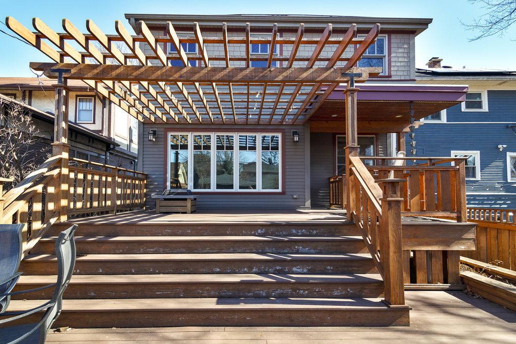 Fall in love with this gorgeous home located on a beautiful tree-lined street in the Ridgeland Historic District of Oak Park on an incredible 34x172 lot. This stunner has been tastefully updated for modern living while preserving its charming architectural details. Thoughtful touches are found throughout, from the striking art glass windows and elegant oak staircase, to the custom kitchen featuring quarter-sawn oak cabinetry and views of the professionally designed and landscaped backyard. Generous living and gathering spaces include a spacious living room, sunroom, formal dining room, and a four-season breakfast room that opens to an inviting deck-perfect for entertaining or unwinding at home. The finished lower level is impeccably maintained and offers a family room, laundry, abundant storage, and space for a future full bath, with architectural drawings available. Upstairs, the primary bedroom is notably large and offers excellent potential for an ensuite bath. The backyard is a private, garden-like retreat with mature plantings, a pergola, paver patio and walkways, and a tranquil water feature. Year-round comfort is provided by hot water heat, dual-zone central air, and low-maintenance Hardie board siding on both the house and garage. Located on a wonderful block with block parties, close to the CTA Green Line, the Farmers Market, and Ridgeland Commons Pool and Ice Rink, Beye Elementary, Julian Middle School and OPRF High School.