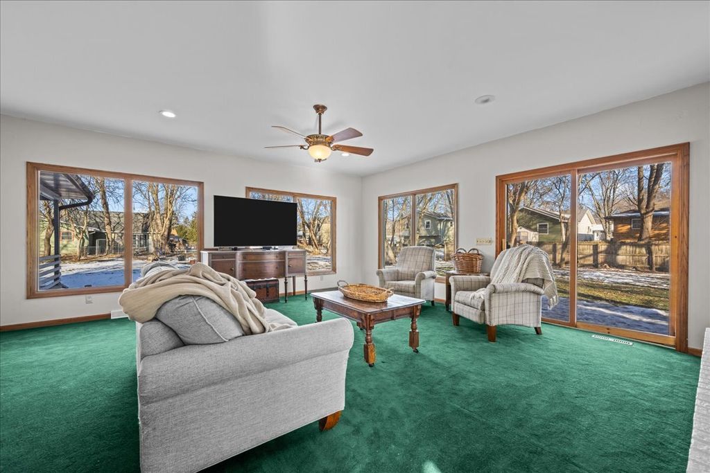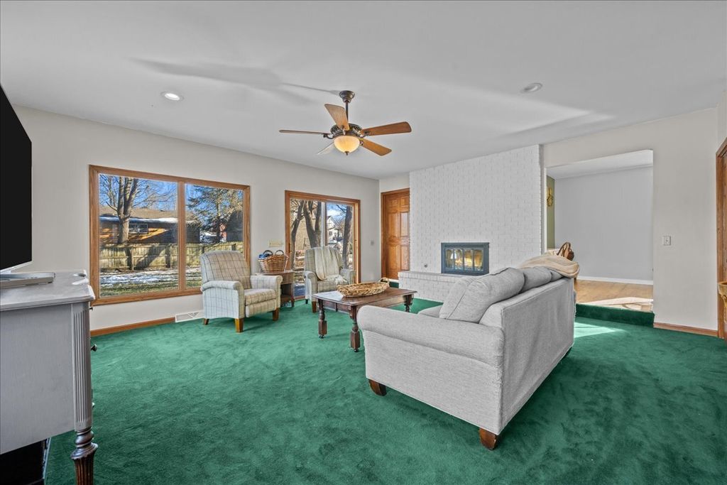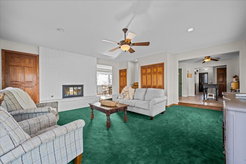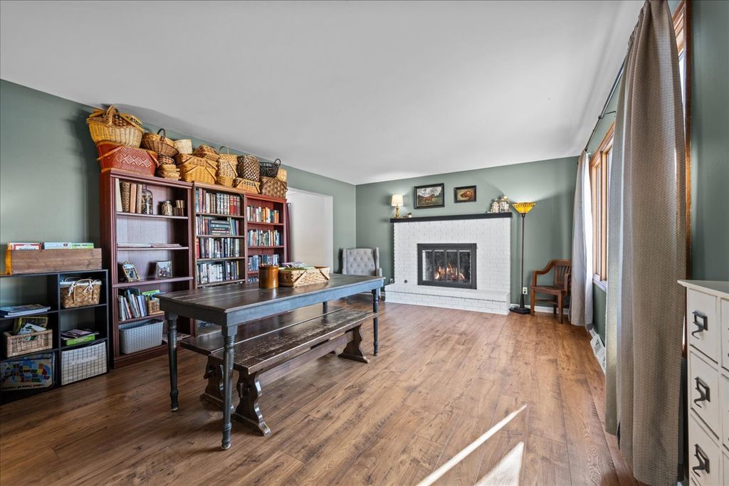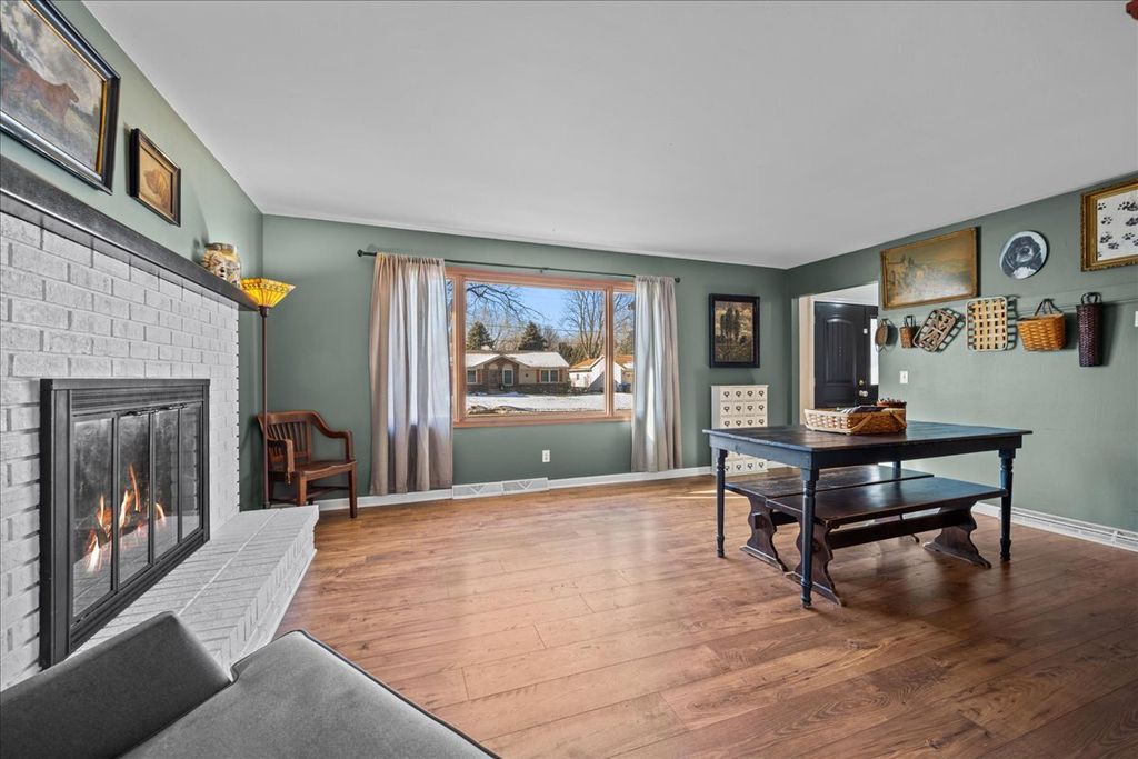 Charming and well-maintained 4-bedroom, 2.1-bath home set on an extra-spacious, tree-lined lot in the heart of Hinckley. A welcoming foyer opens to a bright living room featuring hardwood floors, a cozy fireplace, built-in shelving, and a large picture window. The dining room offers hardwood flooring and generous natural light, perfect for everyday living and entertaining.The refreshed kitchen includes stainless steel appliances, a pantry, and an eat-in area with direct access to the covered porch and backyard. A spacious family room with wall-to-wall windows brings the outdoors in, creating a warm and inviting space.Second fireplace to create warm and cozy nights. A functional mudroom with built-in bench seating, shelving, and coat hooks adds everyday convenience and organization to the main level.Upstairs, you'll find four comfortable bedrooms and a full bath. .The finished basement features a versatile flex room, generous storage, a sauna, and a full bath, offering excellent additional living space and ready for your personal updates. Outside, the expansive yard provides plenty of room for gardening, entertaining, or future customization. Located in a quiet neighborhood with convenient access to local amenities, schools, and major routes, this home presents a wonderful opportunity to enjoy small-town living with everyday convenience.