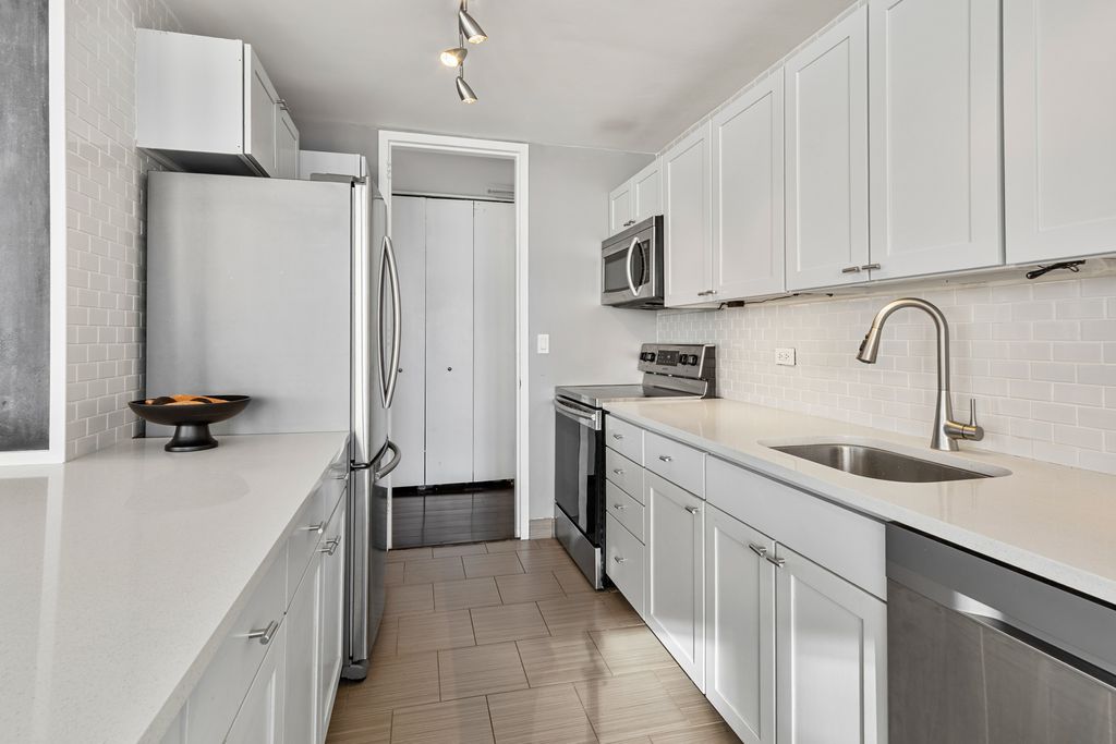 Welcome to this bright and beautifully updated southeast corner condo in Lakeview's premier high-rise - Park Place Tower. This spacious 2-bedroom, 2-bath home spans almost 1,200 square feet and is bathed in natural light from its walls of windows. Enjoy sweeping views of the city and Lake Michigan from the comfort of your stylish living space, which features dark-stained hardwood floors throughout and a separate dining area perfect for entertaining. The kitchen has been thoughtfully renovated with quartz countertops, stainless steel appliances, custom backsplash, and shaker-style cabinetry. Both bedrooms are generously sized and offer abundant closet space, while the bathrooms have been updated with clean, modern finishes. Park Place Tower offers a full suite of resort-style amenities including 24-hour door staff, an outdoor pool and sundeck with grilling stations, updated fitness center, business center, movie room, convenience store, dry cleaners, dog run, and more. This pet-friendly building is located just steps from the lakefront, bike paths, parks, public transportation, and the vibrant shops and restaurants of Lakeview. Parking available to rent our buy. Great location and ideal for first-time buyers looking to stop renting and step into the Chicago high-rise lifestyle.