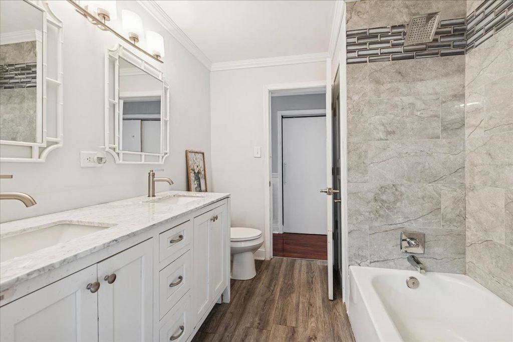 Welcome to Your Dream Home in Dolton! Step into luxury with this stunningly rehabbed bilevel residence, offering three spacious levels of refined living in one of Dolton's most desirable cul-de-sacs. Main Floor Elegance Grand enclosed porch with your very own giant functional hot tub - the ultimate relaxation retreat. Two fireplaces (living room + family room) create cozy gathering spaces. Formal dining room designed for unforgettable entertaining. Chef's kitchen with brand-new stainless steel appliances, gleaming marble countertops, and abundant workspace. Primary suite featuring a spa-like en suite bath with full marble finishes, double sinks, and timeless elegance. Convenient laundry room tucked away with a new washer, utility sink, and ample storage. Lower Level Retreat: Finished basement with a recreational room, sleek countertop bar, and brand-new half bath. Flexible space perfect for game nights, parties, or even a 6th bedroom. Second Floor Comfort: Four generously sized bedrooms, including one with its own en suite half bath. Full marble bathroom with a custom 6-foot vanity and double sinks - a true statement of luxury. Outdoor & Location Highlights: New 16x12 deck for summer barbecues and outdoor living. Two-car garage + spacious driveway for convenience. Exquisite wainscoting, crown molding, and marble finishes throughout - every detail designed to impress. Elementary school just two blocks away, visible from your backyard - a dream for families. Nestled in a beautiful cul-de-sac in one of Dolton's finest neighborhood. This home is more than a place to live - it's a lifestyle upgrade. With endless features and thoughtful design, it's ready to welcome you into a world of comfort, elegance, and joy. Don't miss your chance - schedule your showing today!