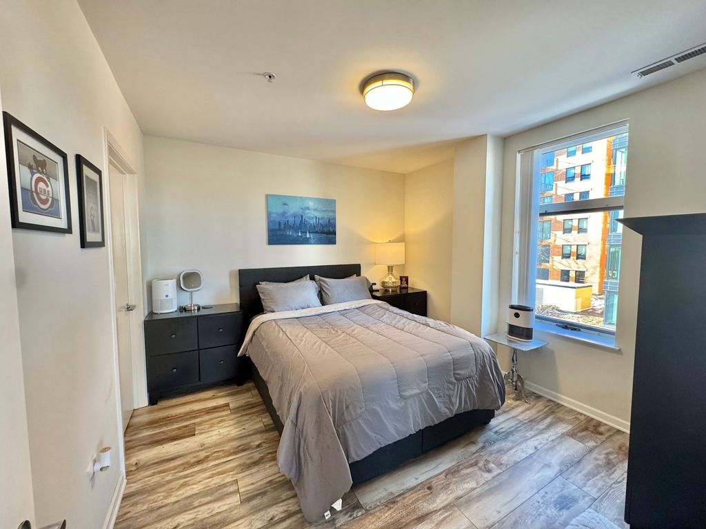 The best that downtown Evanston has to offer is right at your doorstep. Walk a block to the Metra Station, 2 blocks to the Purple Line, Whole Foods, restaurants, medical centers. This convenient & fabulous 1 BR 1 full and 1/2 bath CORNER condo unit is bathed in natural light. It has an open floor plan, 9 foot ceilings, hardwood flooring & a balcony facing quaint Evanston. The kitchen has Brazilian cabinets, granite counters w all NEWER SS appliances overlooking a grand historic landmark from the glass windows. The living, dining room combo makes for great entertaining & living the care free lifestyle of condo dwelling. The large Primary BR has an ensuite bath & walk in closet, and the convenient hallway powder room adds to its functionality, including a stacked washer/dryer inside the unit. Parking is accessible through the elevators to the basement, & residents enjoy a gym, a storage locker & a numbered parking space inside the well maintained heated garage. HOA Includes heat, water, gas, parking, ins, scavenger, lawn care & snow removal. Owner must live there a full year before it can be rented out. NOTE: SHOWINGS: 24 Hour notice all WEEKENDS, Mondays & Wednesdays ok to show after 10am, all other days after 6:30 pm- owners will let you in, they have 2 small dogs-thank you plus specific closing date for this unit in February, 2026