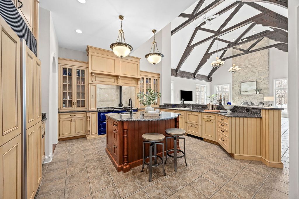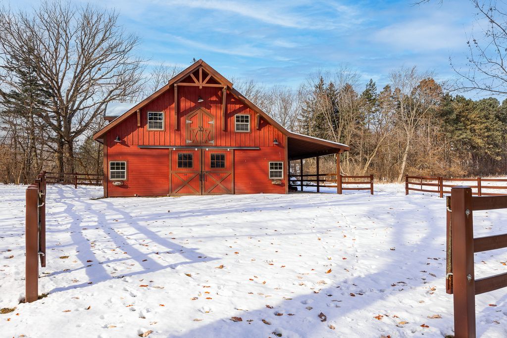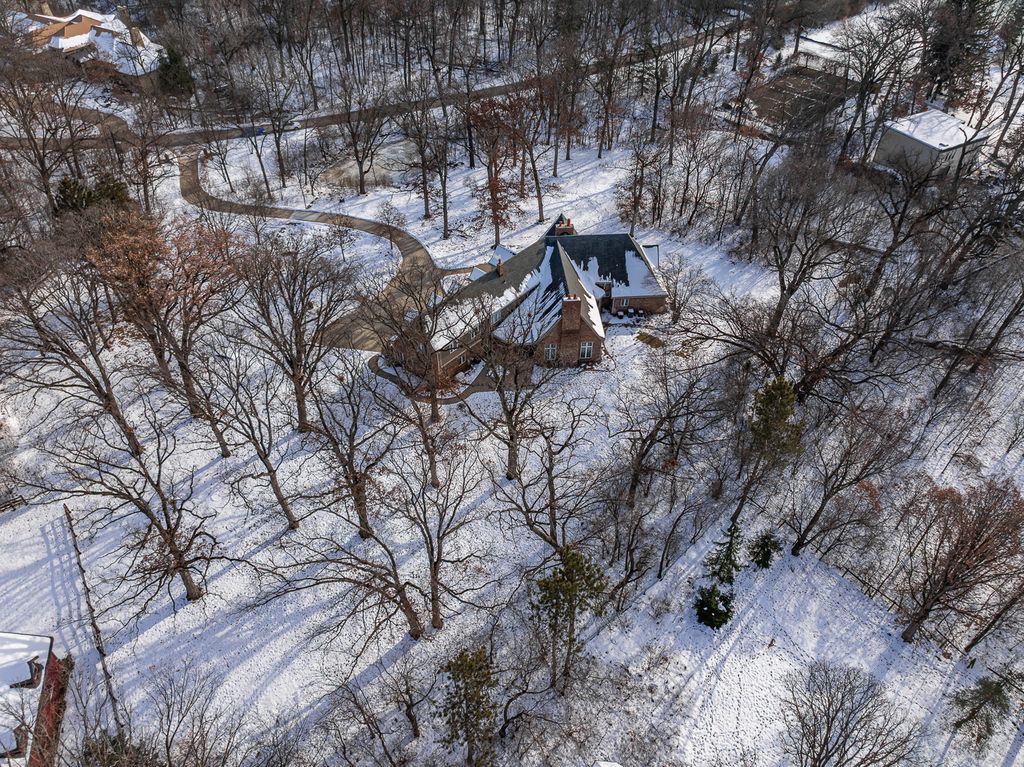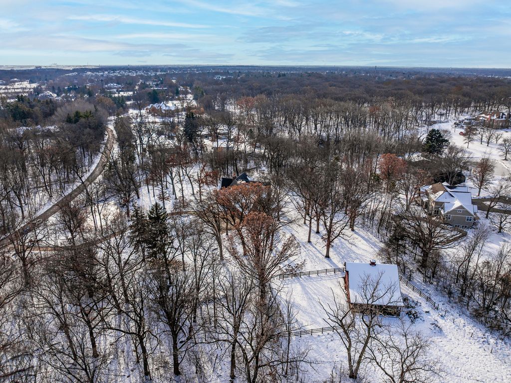 This magnificent 5-bedroom, 4 full and 2 half bath estate offers 6,294 square feet of refined living space set on 5 pristine acres. A grand arched double-door entrance with patterned glass welcomes you into a dramatic foyer with arched ceilings, setting the tone for this exceptional property. Heated tile flooring flows throughout the foyer, gourmet kitchen, and family room, providing comfort and continuity across the main living spaces. The kitchen is thoughtfully designed with custom natural wood cabinetry, granite countertops, a peninsula and center island, both with seating, and premium appliances including an AGA cast iron range that also provides home heating, plus a Sub-Zero refrigerator. A sunlit breakfast nook with expansive windows offers tranquil views of the property, and the kitchen opens directly to the spectacular two-story family room, the true centerpiece of the home, featuring vaulted ceilings with exposed wood beams, a floor-to-ceiling stone fireplace framed by two large windows, surround sound, and dual chandeliers. New hardwood flooring enhances the formal dining room, living room, private office, and primary suite. The dining room showcases a multi-tier tray ceiling, elegant wall sconces, chandelier, and a unique two-sided see-through stone fireplace shared with the living room. The living room highlights cathedral ceilings, abundant natural light, and custom inlay detailing in the hardwood floors. A private office offers serene views along with built-in custom cabinetry including desk, shelving, and storage. The primary suite serves as a peaceful retreat with vaulted ceilings, oversized windows, a walk-in closet with custom built-ins, and a full en-suite bath featuring a walk-in shower and double vanity with granite countertops. Two updated half bathrooms complete the main level. The upper level features new hardwood flooring throughout and is anchored by a dramatic open sitting area overlooking the family room through wrought iron railings with custom woodwork. Barn-door access leads to a convenient storage room and an expansive unfinished space presenting a rare opportunity to add a second primary suite; with room for a large bedroom, walk-in closet, and full bath, making this an ideal setup for multi-generational living or extended guest accommodations. Three generously sized bedrooms offer ample closet space, including two with en-suite bathrooms, one of which is also accessible from the hallway to serve the third bedroom, providing flexible living arrangements. The finished lower level is designed for entertaining, offering custom wood built-ins, rich wood paneling, a wet bar with sink and cabinetry, a fifth bedroom, full bathroom, and laundry room. Exterior highlights include classic brick and stone architecture, a concrete and brick paver driveway, a charming red barn with paddock, a three-car garage with heated floors, an irrigation system, and electric fencing. The expansive lot offers exceptional privacy, surrounded by mature trees that create a peaceful, secluded setting rarely found so close to town. Ideally located just minutes from downtown Naperville's premier dining and shopping, near Egermann Woods, Green Valley Forest Preserve, and Seven Bridges Golf Club, with convenient access to Routes I-88, I-355, and I-55. Schedule your private showing today and experience this exceptional estate firsthand.