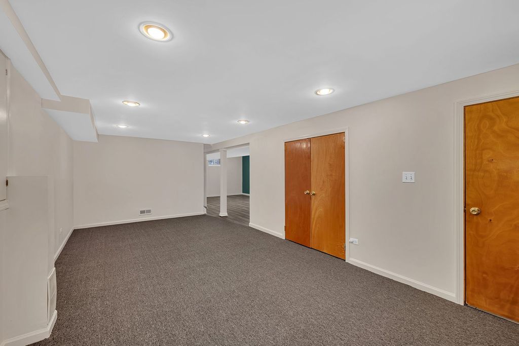 Rare opportunity to own one of the very few ranch homes currently available in Lombard! This spacious and beautifully updated home offers four bedrooms on the main level-each with brand new carpet-plus an additional fifth bedroom in the finished basement, providing exceptional flexibility for today's lifestyle. Upon entry, you're welcomed by a charming front sitting room highlighted by a large bay window overlooking the front yard. The primary suite is a true retreat, featuring a walk-in closet, a dedicated sitting area, and a full en-suite bath complete with marble tile flooring, jetted tub and separate stand-alone shower. Three additional main-level bedrooms are complemented by a full bath and a convenient half bath. The heart of the home opens to an impressive kitchen and living area that will pleasantly surprise you with its size and functionality. The kitchen boasts custom cherry cabinetry, granite countertops and backsplash, all stainless steel appliances including a brand new stove and dishwasher, a large island with stool seating, spacious eat-in area, and a built-in desk. Just off the kitchen, the family room features brand new carpet, built-in custom cabinetry, a wet bar, and abundant natural light from sliding glass doors leading to the backyard patio, as well as a picture window overlooking the private yard. Relax around the wood-burning fireplace that has a decorative marble encasement. The finished basement expands the living space even further, offering new carpet and flooring, an additional full bathroom, a laundry room with storage, multiple closets, and an expansive crawl space (32x31) for even more storage. This home features two zoned HVAC systems, two hot water heaters, it has been freshly painted throughout and includes a detached two-car garage. Head outside to enjoy the patio-perfect for entertaining or relaxing in the private backyard. Ideally located near Downtown Lombard, Metra station, parks, restaurants, shopping, and just minutes from the expressway, this home truly has it all. Schedule your showing today!