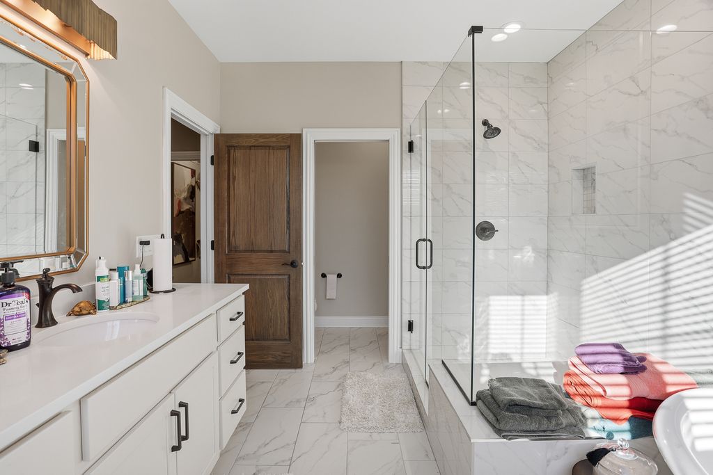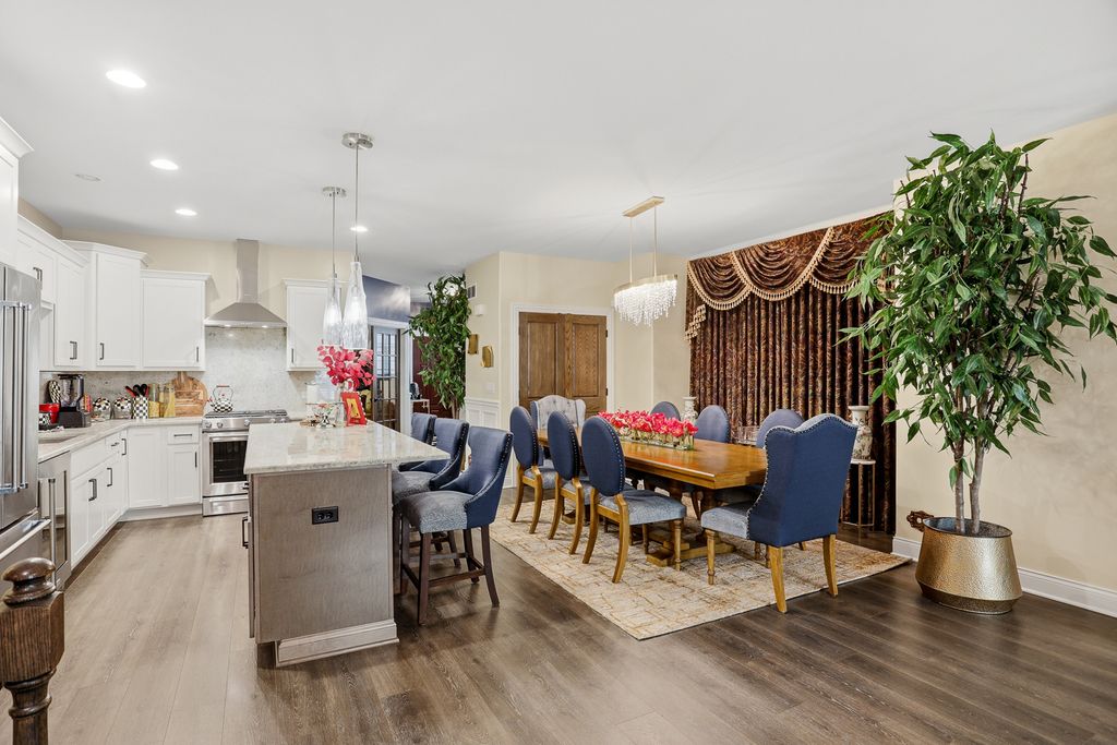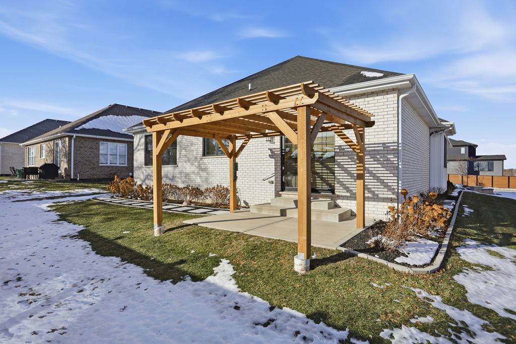 Discover exceptional single-level living in this beautifully appointed 3-bedroom (possibly 4 bedroom) 2.1 bathroom ranch home offering almost 2,100 square feet of thoughtfully designed living space in the heart of Orland Park. This home blends luxury finishes with everyday comfort, creating an inviting atmosphere from the moment you step inside. The gourmet kitchen is the centerpiece of the home, featuring designer cabinetry, granite countertops, a spacious center island/breakfast bar, and stainless steel appliances. The extensive trim package and high-end craftsmanship continue throughout the home, adding warmth and elegance to every room. The open-concept layout seamlessly connects the kitchen, dinette, and expansive living room with custom draperies making it an ideal space for gatherings and entertaining. A versatile flex room with an impressive custom coffered ceiling offers endless possibilities for a 3rd bedroom, home office, formal dining, reading nook, or hobby room - allowing you to personalize the space to your lifestyle. Retreat to the luxury primary suite, complete with a spa-inspired bathroom featuring a large walk-in shower, separate soaking tub, large vanity, and an oversized walk-in closet.2 additional bedrooms on the main floor provide comfort and privacy for guests or family members. The finished basement extends your living space, offering room for recreation, a home gym, media room, or storage plus a 4th bedroom - whatever suits your needs. Step outside to enjoy the beautifully designed front porch and outdoor area in the backyard with a charming pergola over the patio - perfect for relaxing, grilling, or entertaining during the warmer months. Situated in a highly desirable Orland Park location, this home offers convenient access to shopping, restaurants, and major transportation routes - all while delivering the peace and comfort of a quiet residential neighborhood. This spacious and elegantly designed ranch is truly move-in ready and offers the best in single-family living.