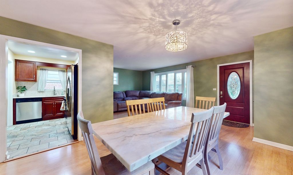 Situated in the desirable Cicero area, this raised ranch boasts a comfortable and stylish living space that is move-in ready. The bonus room on the main floor provides extra space for an office, playroom, or den. The main level boasts 2 bedrooms, an updated bathroom, a formal dining area, a spacious living room, and a modern kitchen with an eat-in bar, granite backsplash and countertops, and new A/C & furnace in 2025!. The full finished basement offers a perfect spot for family gatherings with a family room featuring tile flooring, laundry with a sink, and plenty of storage space. Additionally, a flood system control was installed only three years ago to ensure your peace of mind. Enjoy relaxing summer days on the covered patio, and take advantage of the spacious 2 1/2 car garage with a door to the backyard. Professionally landscaped in 2024. This property is sold as is. Conveniently located near I-290, I-55, shopping, Chicago downtown, and restaurants, this property won't be on the market for long! Schedule your showing today to see all that this property has to offer. Home is being sold as-is.