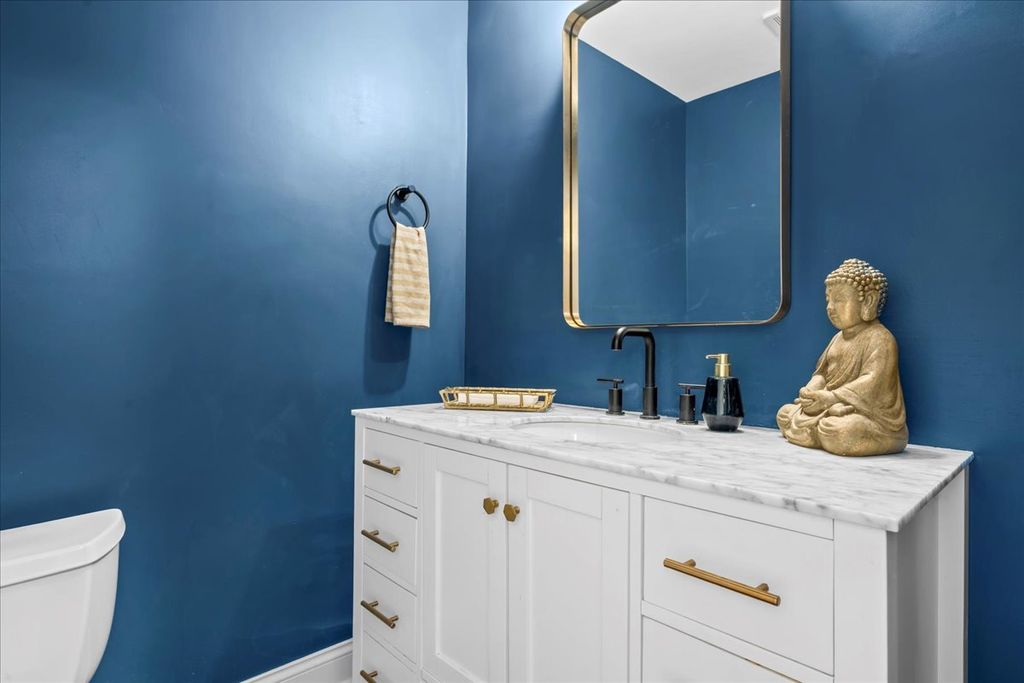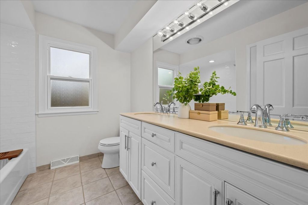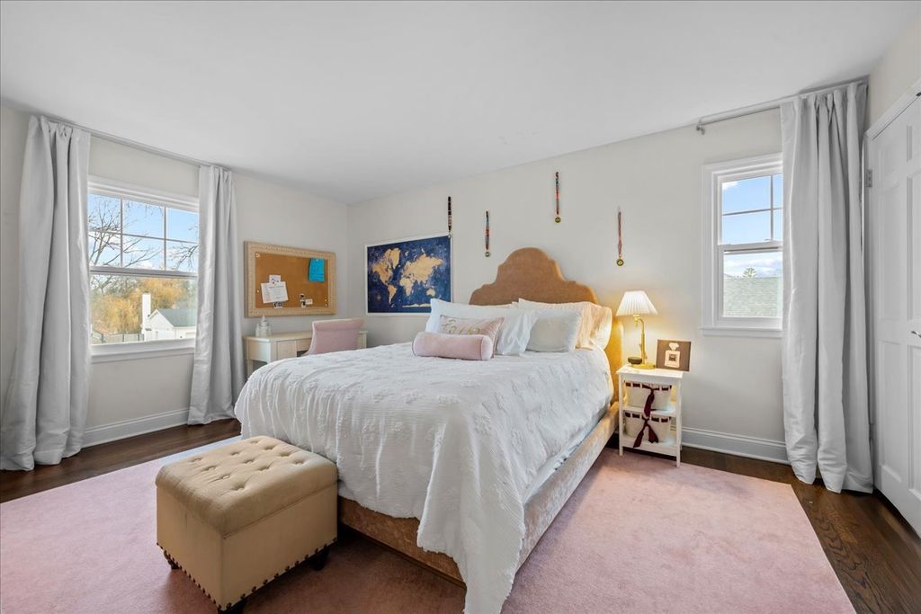 Updated largest 5 bedroom 2.5 bath Colonial model in Colony Point. Enjoy 3200 sf. of move-in ready living space, plus a finished 1,372 sf basement. Enter to a spacious foyer with bridal staircase, and an open circular floorplan perfect for easy living, and entertaining. Hardwood floors throughout first and second floors. All new windows, sliding doors, and front door let the sun in. Kitchen and family room open to a paver patio, and a beautiful, large, wooded 100 x 170 lot that backs to Brierhill Road. The private fenced yard is unique in that views are of woods and not another home. Upstairs, a fantastic primary suite, 3 other spacious bedrooms, plus a 5th bedroom/office, all with excellent storage. Kids and adults of all ages will love the fantastic basement rec-room. This updated colonial, on a beautiful, and quiet tree-lined street with sidewalks, is convenient to all transportation, shopping, recreation, and award winning schools.