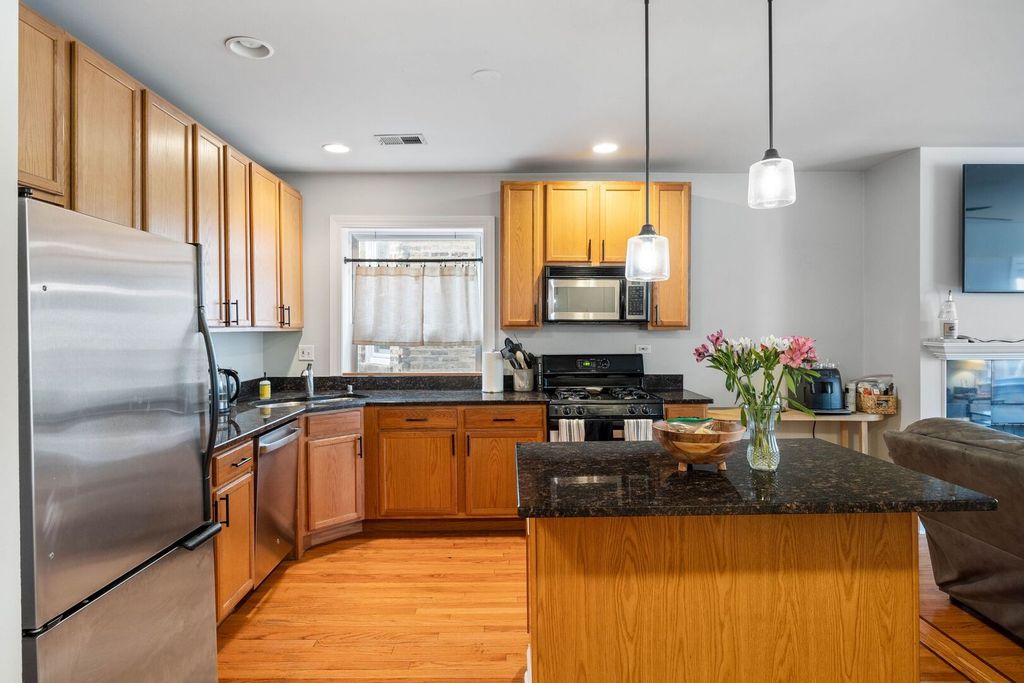 Welcome to this beautifully maintained 2 bedroom, 2 full bath condo offering a spacious open living area with abundant natural light and modern finishes throughout. Unit features include In-Unit Laundry (2025), Dishwasher (2025), Central Air and Heat (both 2024), dedicated gated parking space included, generous closet space throughout and oversized bedrooms. The living space easily accommodates large living room furniture and a full dining table. The kitchen features granite countertops, stainless steel appliances, and full-size 42" cabinetry, flowing seamlessly into the living and dining areas, perfect for everyday living and entertaining. The HUGE primary suite boasts two separate closets and a private en-suite bathroom. A spacious second bedroom provides flexibility for guests, a home office, or additional living needs. Step outside to enjoy your private, south-facing balcony, ideal for relaxing or grilling. Ideally located just steps from the forthcoming Ronan Park Gateway & Plaza, River Park, Francisco Brown Line Station, Global Community Garden, and all that Albany Park and Lincoln Square have to offer. Don't miss the opportunity to make this exceptional home your own!