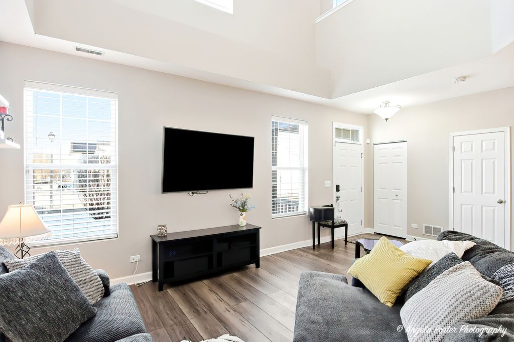 Experience modern luxury in this sun-drenched Sweetwater end-unit, updated and move-in ready; quick closing possible. The open-concept interior features soaring ceilings, neutral paint, and a versatile loft perfect for a home office or cozy reading nook. At its heart, a sleek, remodeled kitchen shines with black granite countertops and premium black stainless steel Samsung appliances, while the dramatic master suite offers a spa-like retreat with a full bath, walk-in closet, plus yet another full closet. 2nd floor laundry with newer stackable washer and dryer. Two-car garage and the peace of mind of a newer A/C and water heater, this turn-key gem is the ultimate blend of style and convenience-and it won't last long.