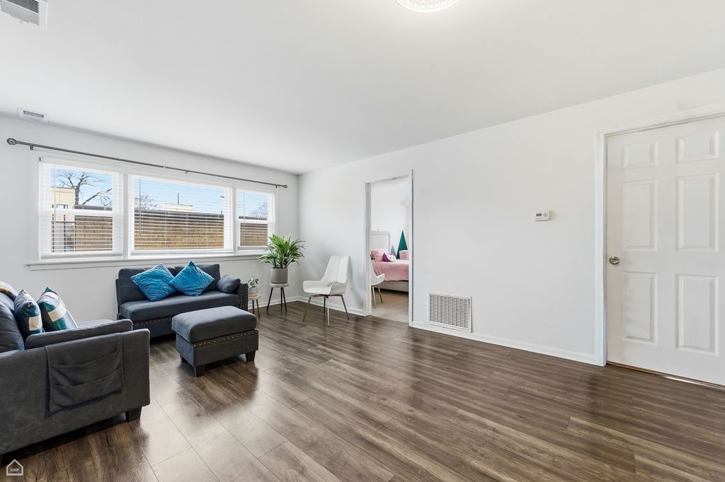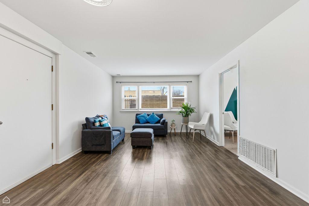 Perfect for a first-time buyer or an investment-minded buyer! Quickly appreciating location. Low monthly assessments and well cared for building. Jefferson Park. Walkable to multiple parks and blue line. Rare corner 3 bed 2 bath condo in a well-managed 7-unit building with no stairs to unit, not a basement unit. Newer building with more modern forced air, individually controlled heating, and central air conditioning, recently updated kitchen and bathrooms, and newer Feldco windows. Floorplan allows for a large living room (currently used as living/dining), and an oversized kitchen with a dining area. Same-floor storage just one room away, plus a shared, common area 27' x 27' family/party room with its own bathroom, perfect for entertaining. Pet-friendly with one parking space included. Solid, mainly owner-occupied association (currently 1 rental). Excellent location .6 of a mile to the Blue Line and Metra, near Jewel-Osco, Starbucks, the Jefferson (Memorial) Park, Dunham Park, restaurants, pubs, best deal for such an amazing location!