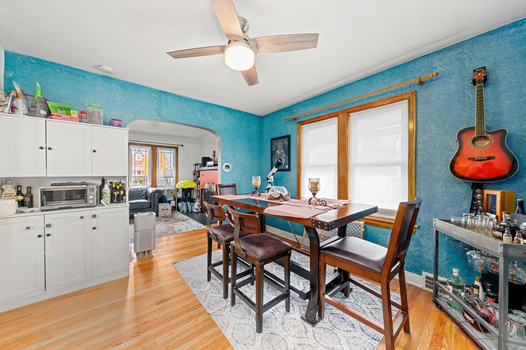 WELCOME to SOUTH BERWYN! A must see! Move-in ready Georgian home features fresh paint and hardwood floors throughout. The first floor offers a spacious living room that flows into the dining room and an updated open-concept kitchen with an island, along with a half bath and 1 bedroom. Freshly painted stairs lead to the second floor, which includes three generously sized bedrooms and a full bathroom. Basement offers a family room and an enclosed laundry area with additional storage space. Backyard is ready for entertaining, with a gazebo and shed included. Conveniently located walking distance to Pershing Rd and Ogden Ave, near local restaurants, retail stores, and only minutes from I-55.