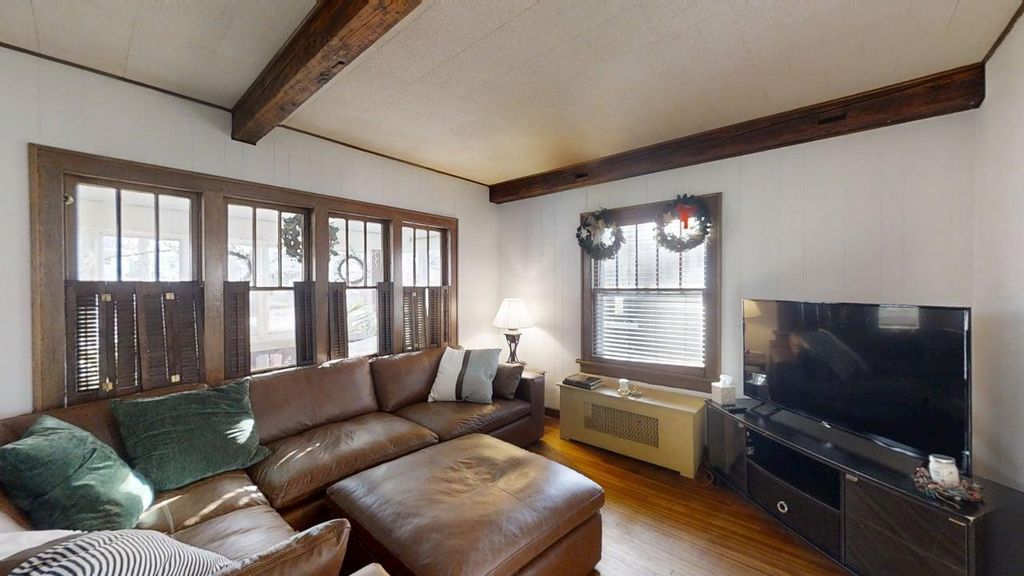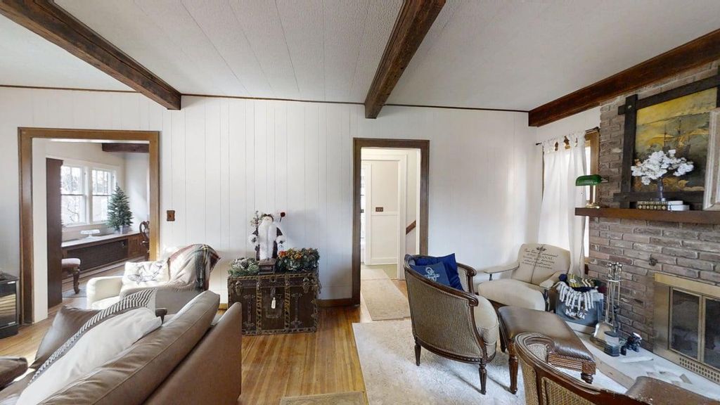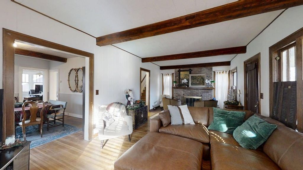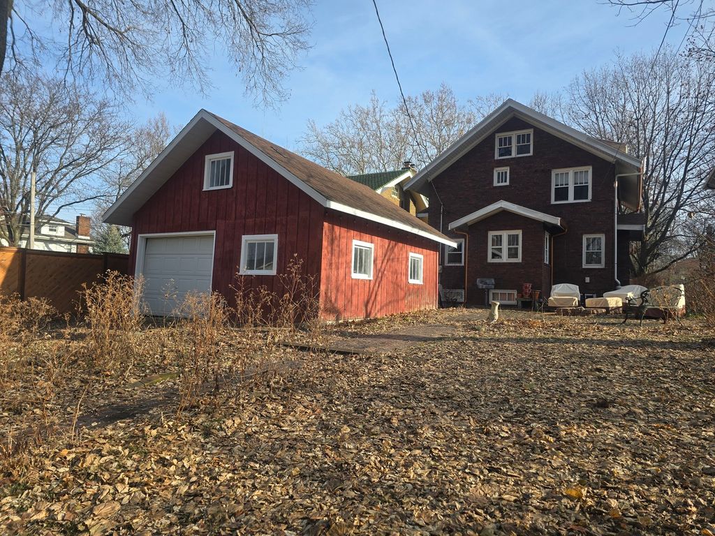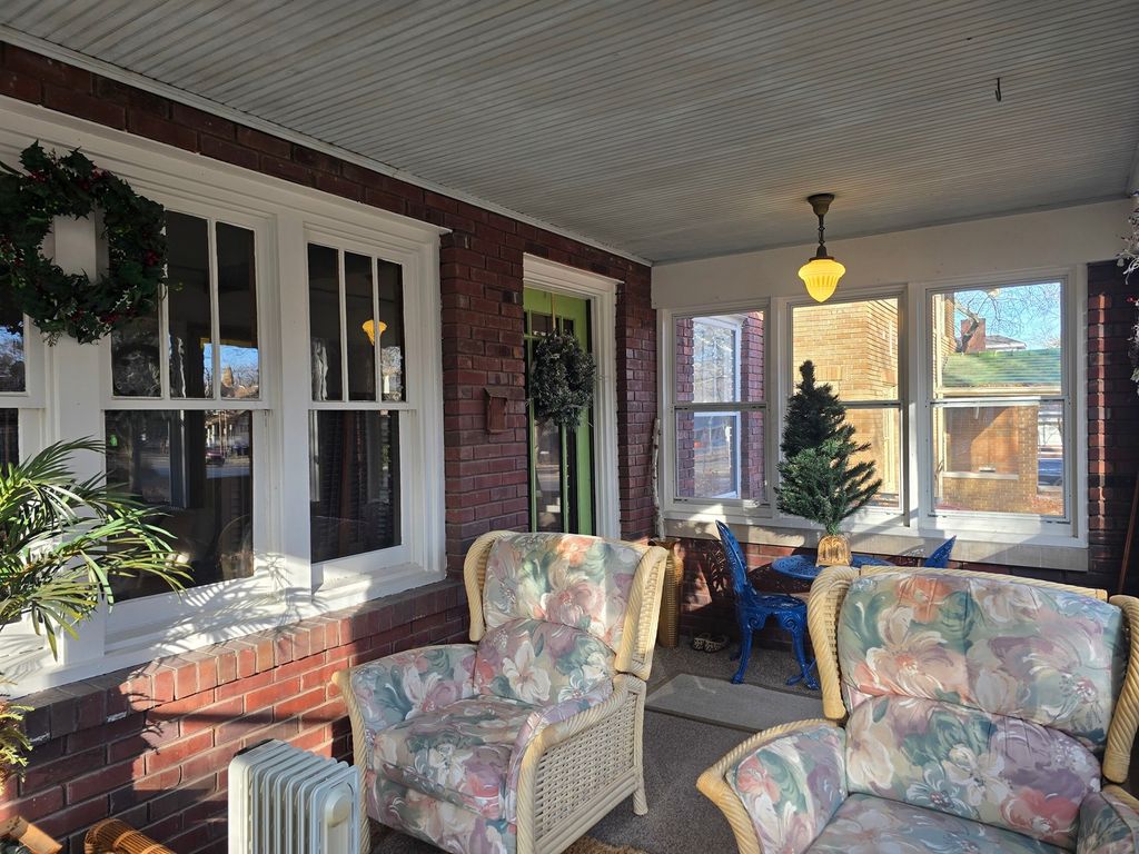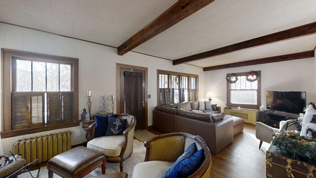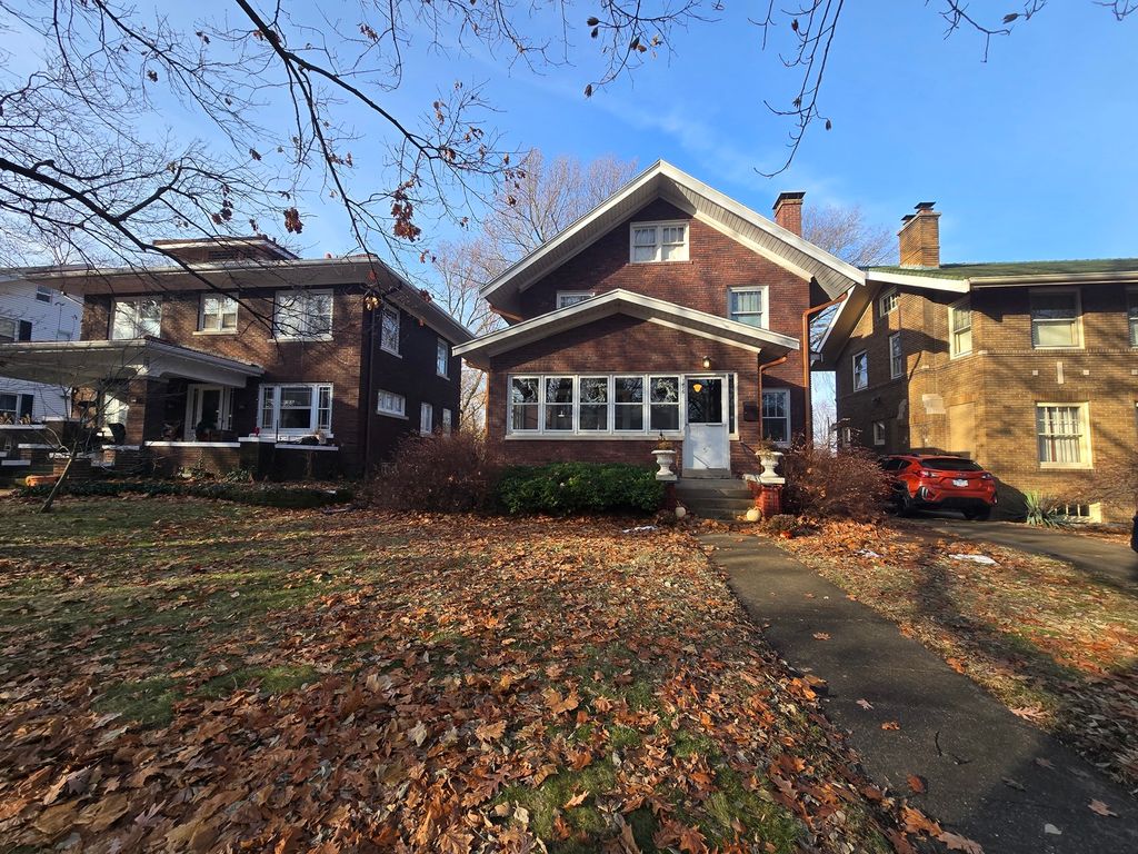 You'll instantly fall in love with the timeless charm in this two-story brick home located in the historic district on a beautiful, tree-lined stretch of Clinton Blvd! A welcoming enclosed front porch sets the tone-perfect for relaxing with a book or enjoying crisp evenings. Inside, the main level offers spacious living and dining rooms highlighted by hardwood floors, abundant natural light and gorgeous beamed ceilings. The kitchen is complemented by an additional versatile room, ideal for a cozy breakfast nook, coffee space, or casual sitting area. A convenient guest half bath off the kitchen completes the main level. Upstairs, you'll find three generously sized bedrooms, all featuring hardwood floors, along with a full bathroom offering ample storage. The expansive attic provides excellent storage now, with exciting potential to be finished into additional living space. The full unfinished basement includes the laundry area and four separate rooms-perfect for storage, workshops, or future finishing possibilities. Outside, enjoy entertaining on the charming brick patio, while the oversized one-car garage offers added convenience with alley access. Recent updates include refrigerator (2022), gutters, (2024) and dishwasher (2025). Classic character, flexible spaces, and a prime historic location make this home a must-see!