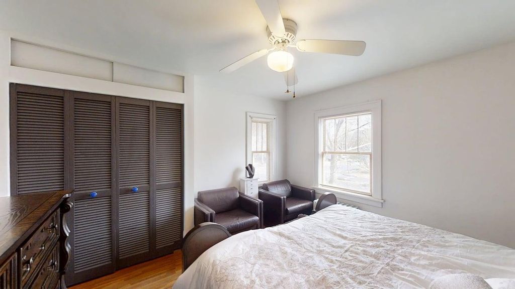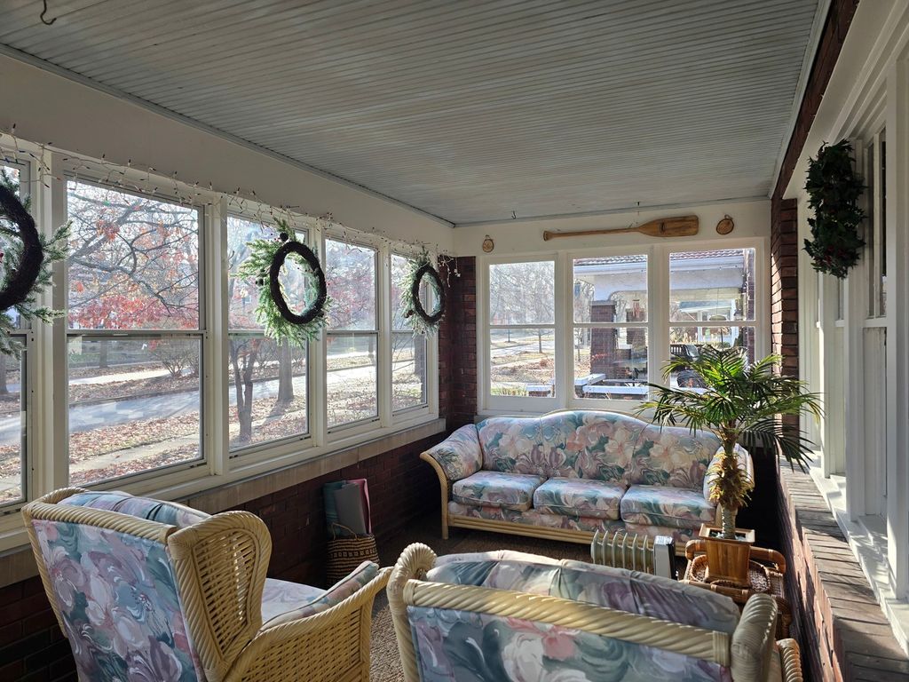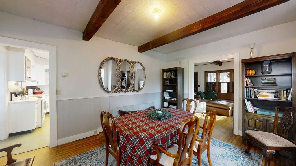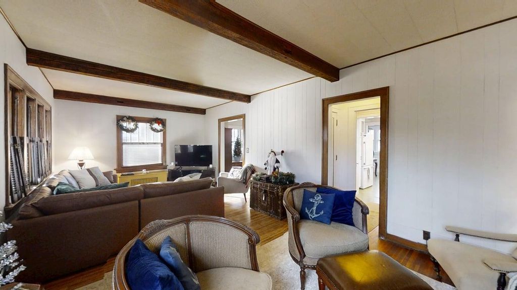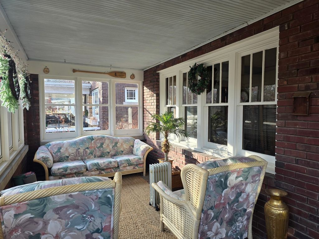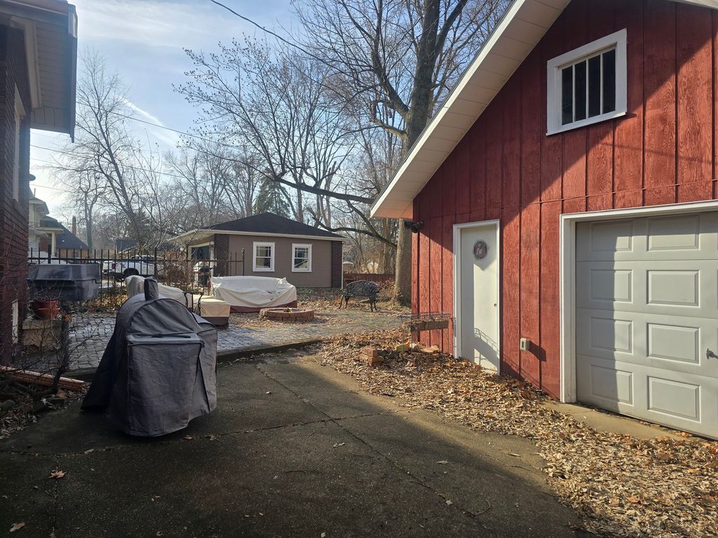 You'll instantly fall in love with the timeless charm in this two-story brick home located in the historic district on a beautiful, tree-lined stretch of Clinton Blvd! A welcoming enclosed front porch sets the tone-perfect for relaxing with a book or enjoying crisp evenings. Inside, the main level offers spacious living and dining rooms highlighted by hardwood floors, abundant natural light and gorgeous beamed ceilings. The kitchen is complemented by an additional versatile room, ideal for a cozy breakfast nook, coffee space, or casual sitting area. A convenient guest half bath off the kitchen completes the main level. Upstairs, you'll find three generously sized bedrooms, all featuring hardwood floors, along with a full bathroom offering ample storage. The expansive attic provides excellent storage now, with exciting potential to be finished into additional living space. The full unfinished basement includes the laundry area and four separate rooms-perfect for storage, workshops, or future finishing possibilities. Outside, enjoy entertaining on the charming brick patio, while the oversized one-car garage offers added convenience with alley access. Recent updates include refrigerator (2022), gutters, (2024) and dishwasher (2025). Classic character, flexible spaces, and a prime historic location make this home a must-see!