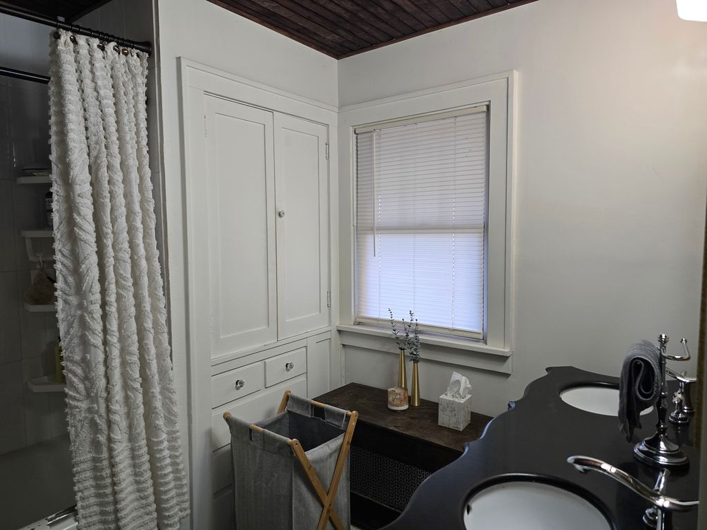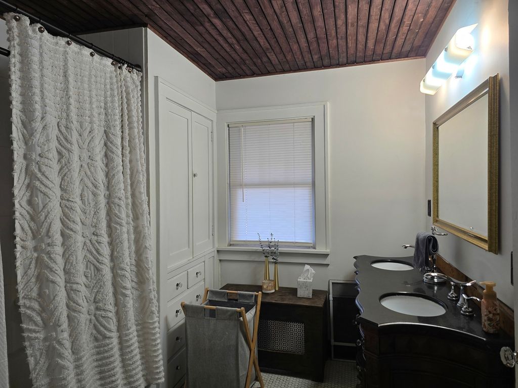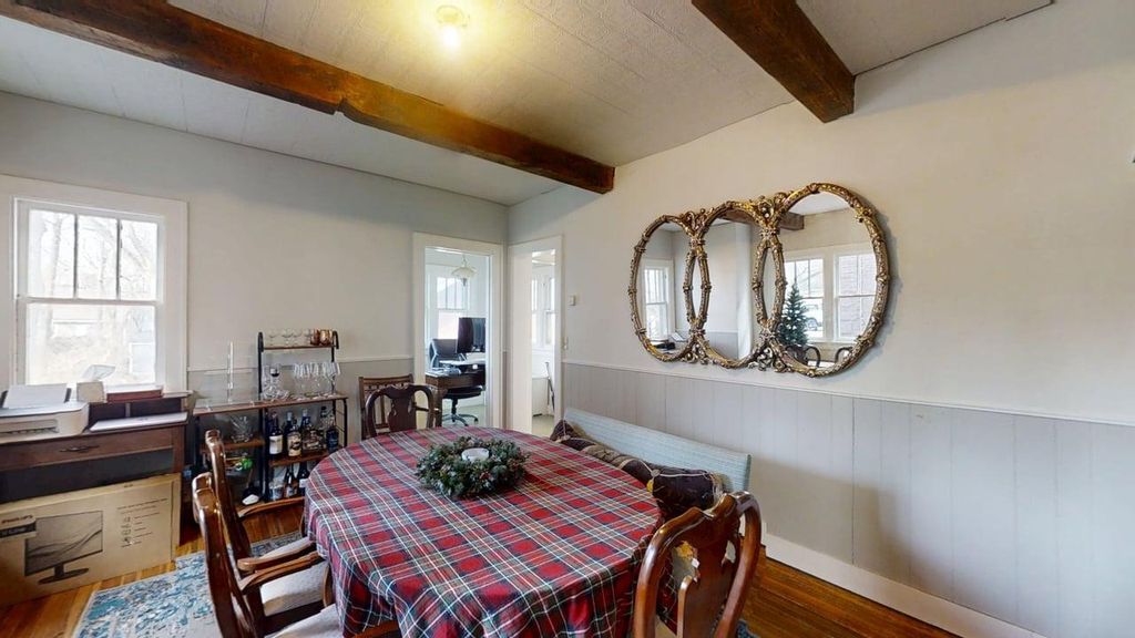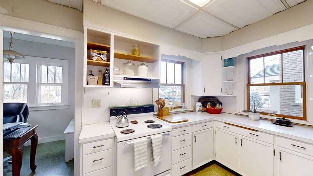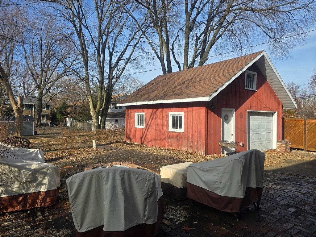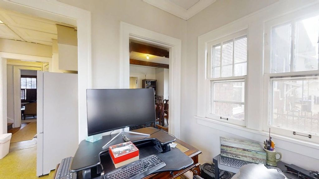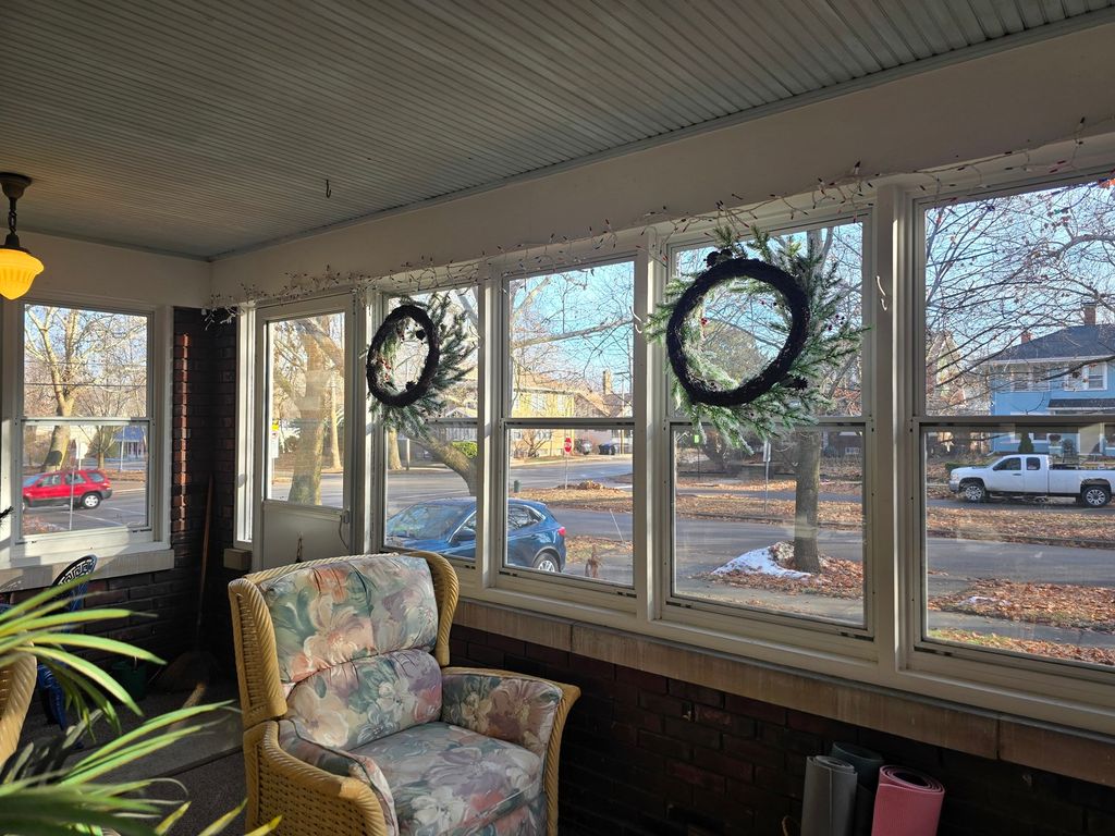 You'll instantly fall in love with the timeless charm in this two-story brick home located in the historic district on a beautiful, tree-lined stretch of Clinton Blvd! A welcoming enclosed front porch sets the tone-perfect for relaxing with a book or enjoying crisp evenings. Inside, the main level offers spacious living and dining rooms highlighted by hardwood floors, abundant natural light and gorgeous beamed ceilings. The kitchen is complemented by an additional versatile room, ideal for a cozy breakfast nook, coffee space, or casual sitting area. A convenient guest half bath off the kitchen completes the main level. Upstairs, you'll find three generously sized bedrooms, all featuring hardwood floors, along with a full bathroom offering ample storage. The expansive attic provides excellent storage now, with exciting potential to be finished into additional living space. The full unfinished basement includes the laundry area and four separate rooms-perfect for storage, workshops, or future finishing possibilities. Outside, enjoy entertaining on the charming brick patio, while the oversized one-car garage offers added convenience with alley access. Recent updates include refrigerator (2022), gutters, (2024) and dishwasher (2025). Classic character, flexible spaces, and a prime historic location make this home a must-see!