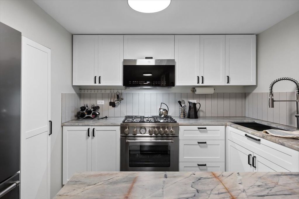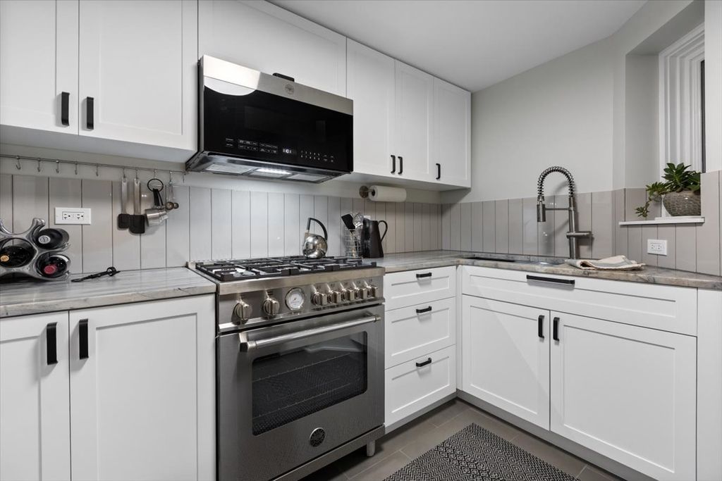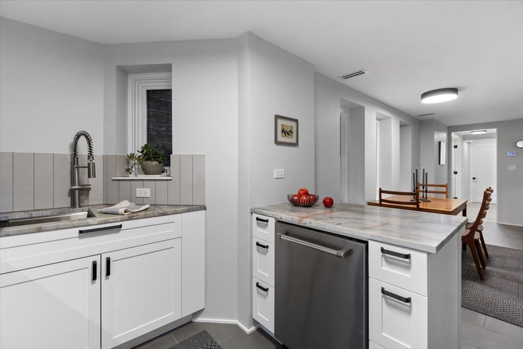 Beautifully renovated 1 bed + office condo on Burton Place in historic Old Town. Nestled amongst mature trees, this home enjoys excellent natural light throughout thanks to the oversized lot and generous neighboring setbacks. Architect-led, the renovation thoughtfully maximizes style, comfort, and functionality in an efficient layout. Starting with a direct entrance into the unit and a large foyer before entering the living room where custom bookcases adorn the walls and the gas fireplace anchors the room. Adjacent to the living room is a private office with a south-east facing window welcoming sunlight and the gentle sound of the neighbor's koi pond. The kitchen is outfitted with new Bertazzoni appliances, marble countertops, a ceramic tile backsplash, and brand-new cabinetry - including a pantry. From the dining room you enter the primary suite, with a bath smartly tucked into the hallway and a large walk-in closet provides ample storage. The bedroom dimensions are generous and the room is full of natural light. In-unit laundry and furnace are brand new. For those who appreciate clean lines, symmetry, and high-quality materials, this home is a must see. Burton Place is a quiet cul-de-sac known for its diverse and architecturally significant buildings. Easy access to downtown, the lakefront, and Wells Street with endless dining and entertainment options. A wonderful condo in a prime location.