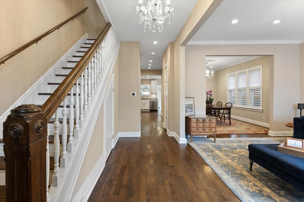 Warm, inviting, and exceptionally well maintained, this six-bedroom, three-bathroom home in Avondale offers an ideal footprint with effortless flow for everyday living and entertaining. Recently renovated and freshly painted, the main living levels showcase hardwood floors, generous ceiling heights, and oversized windows that fill the home with natural light. The foyer opens to a spacious living and dining area that transitions seamlessly into the kitchen, appointed with granite countertops, a gas range, abundant custom cabinetry, and a charming breakfast nook. A full bath with a walk-in shower completes the main level. Just beyond the kitchen, the family room features soaring 10+ foot ceilings and overlooks the private backyard, creating a bright and comfortable gathering space. Upstairs are three spacious bedrooms and a full bath. The primary bedroom has two custom walk-in closets and a vaulted ceiling. The fully finished lower level, accessed from the family room, provides exceptional flexibility with three additional bedrooms, perfect for guest rooms, offices, or fitness space, along with a full bath, laundry area, and an extra-wide hallway ideal for additional storage. Located on quiet, one-way Gresham Avenue, the home offers outstanding proximity to the dining, shopping, and entertainment of Logan Square and Avondale, with easy access to Milwaukee, Belmont, and Diversey. Commuting is effortless with nearby highway access and a short walk to the newly renovated Belmont Blue Line station.