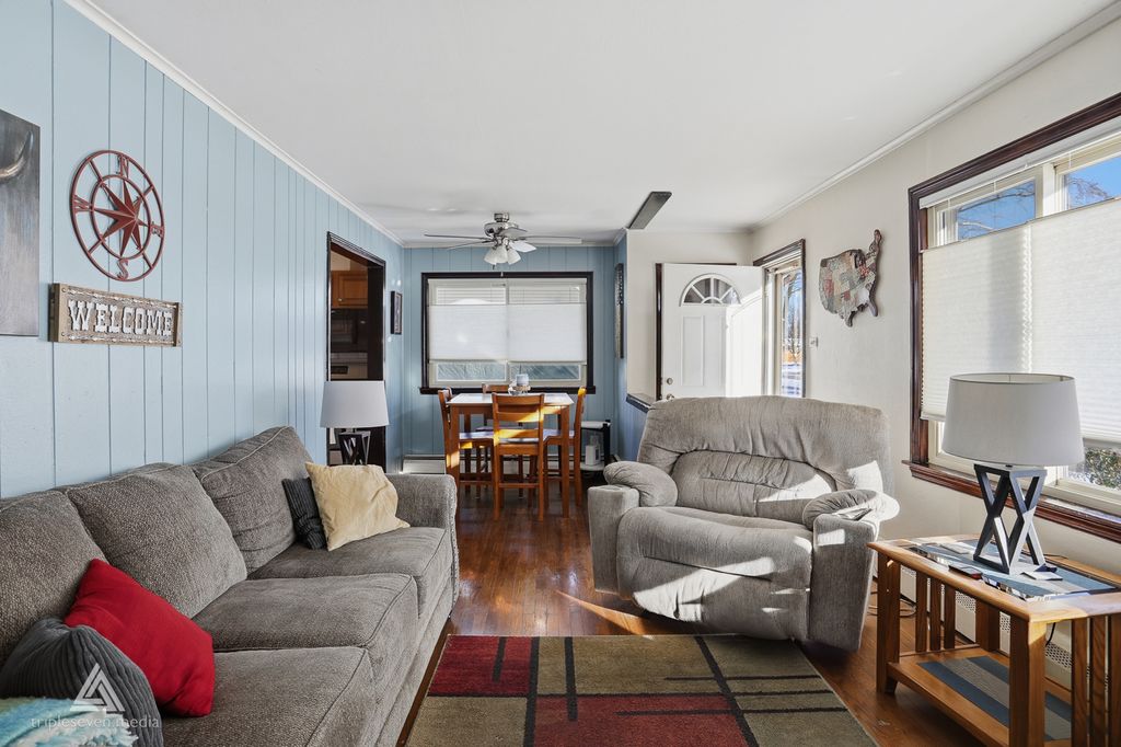 PRICE DROP!!! Welcome to this well-maintained and inviting older home, filled with character and a warm farmhouse feel. Beautiful hardwood floors flow throughout, enhancing the home's charm. Offering two bedrooms and one full bath, the layout also includes a versatile den/game room that can easily be transformed into a nursery, office, or additional bedroom to suit your needs. The primary bedroom features a generous closet, while the bright second bedroom brings in plenty of natural light. The kitchen is equipped with oak cabinets, a newer refrigerator, and a newer microwave-ready for everyday cooking and entertaining. The hot water heater and whole house boiler have been recently updated, giving you added peace of mind. A standout feature of this home is the spacious attic, offering approximately 8-10 feet of clearance, providing excellent potential for future living space or storage. Step outside to a fully fenced backyard, vibrant with colorful perennials in the spring and summer. Enjoy evenings by the fire pit or relax under the outdoor lighting-an ideal space for gatherings and quiet nights alike. The detached garage includes a workbench, shelving, and additional attic storage, perfect for hobbies or extra organization. Conveniently located near schools, parks, and the library, this home also offers easy access to the train station, bus stops, shopping, and major interstates-everything you need just moments away. Don't miss out on this beautiful home with incredible potential and timeless charm! COME SEE THIS HOUSE TODAY!!!!