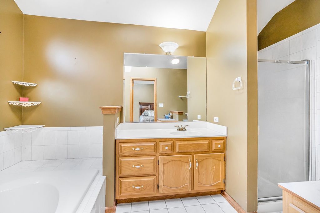 Welcome home to this well maintained two-story residence featuring 4 bedrooms and 3.5 baths in a great location! The welcoming foyer opens to a stunning living room, dining room, and family room, highlighted by gleaming hardwood floors and a Juliet balcony overlooking the living space. The kitchen offers ample cabinetry, a pantry, and a convenient dining area. The cozy family room features a classic fireplace, perfect for relaxing or entertaining during the winter months. Upstairs, the spacious primary suite boasts vaulted ceilings, double-door entry, a walk-in closet and a private en-suite bath complete with a skylight. The additional bedrooms are generously sized and filled with natural light, offering excellent closet space. The finished basement adds valuable living space with a full bathroom, plenty of storage, and an ideal setting for recreation or entertaining. Enjoy outdoor living with the convenience of a paved patio and a large, fenced-in yard, all in great condition and ready to enjoy. Updates include: HVAC (2023) Water Heater (2023) Dishwasher (2023) Refrigerator (2020) Sump pump, back up battery and ejection pit (2025) Gutters (2023) Garage springs/extensions and rollers replaced. Kitchen freshly painted (2025). Sold As Is.