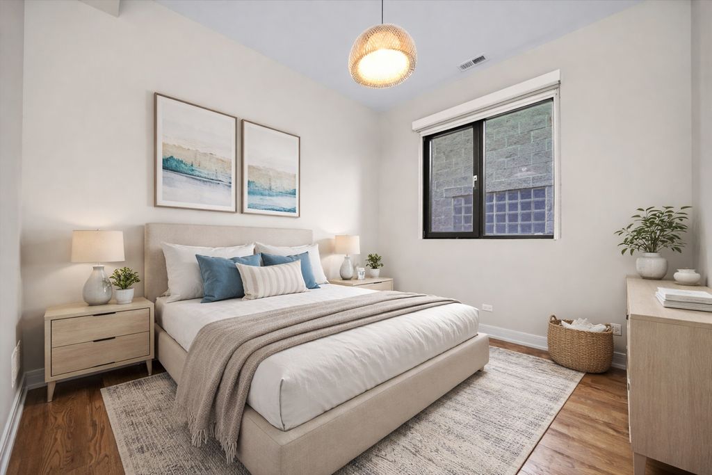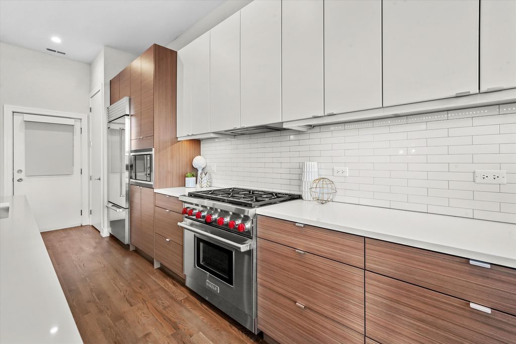 RARE newer construction built in 2016, this stunning 3-bedroom, 2-bath condo sits on an EXTRA WIDE 36' lot just steps from Division Street and seamlessly blends modern design with everyday comfort-plus multiple outdoor spaces, including a private roof deck. Step inside to a light-filled open floor plan designed for a bright, airy living experience. The modern kitchen features top-of-the-line Sub-Zero and Wolf appliances, sleek countertops, abundant storage, and a massive island with seating-perfect for hosting. The spacious living area is filled with natural light from oversized windows and offers direct access to a balcony, one of three outdoor spaces. The expansive primary suite is a true retreat, featuring a spa-like bathroom with a double vanity, steam shower, heated floors, and a walk-in closet. A private balcony off the primary bedroom adds an extra touch of luxury. Two additional bedrooms are generously sized and share a full hall bath. The showstopper of this home is the massive private roof deck-an entertainer's dream with skyline views and endless possibilities for outdoor living. All outdoor spaces feature Trex decking. Additional highlights include in-unit washer/dryer, garage parking, and ample storage throughout. Set in an excellent West Town location, this home truly offers the best of modern city living. Welcome home! Explore the property in 3D-click the 3D button to take a virtual tour and experience every detail.