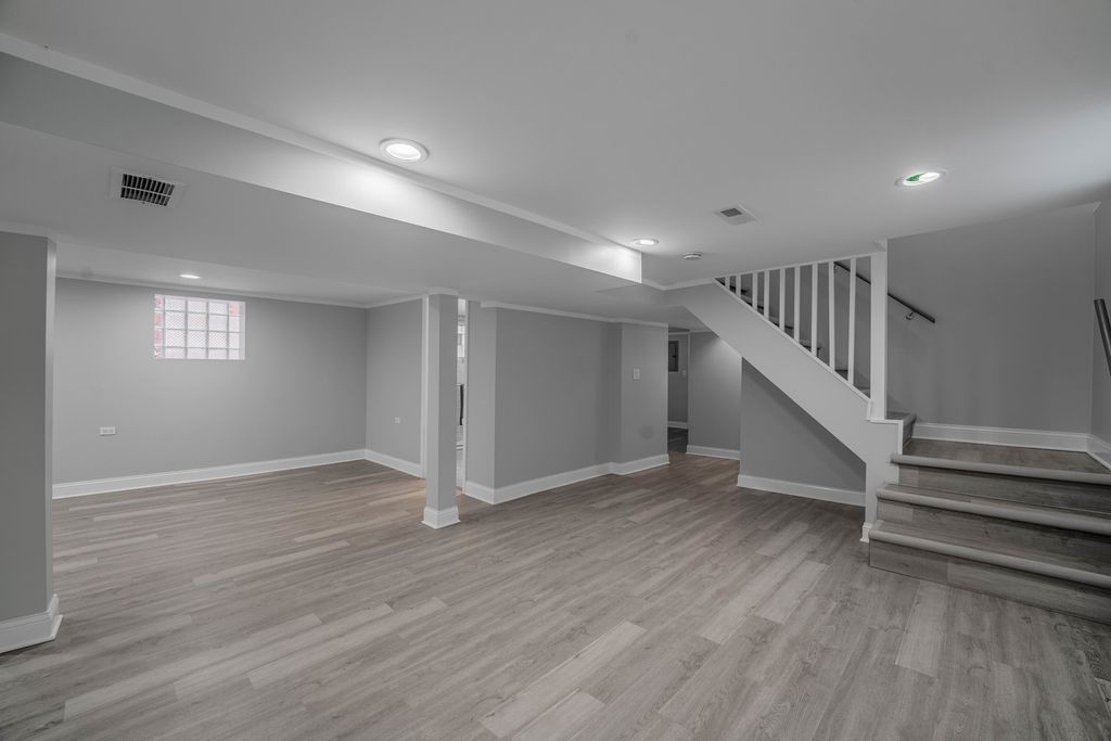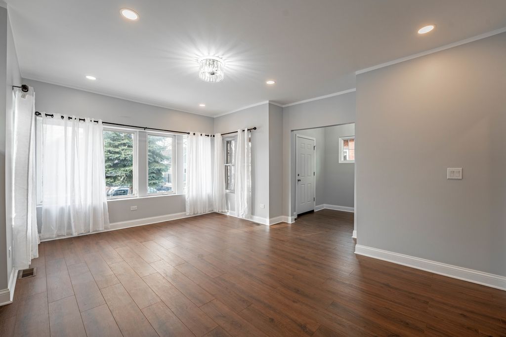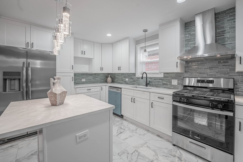 Step inside this beautifully rehabbed 5-bedroom, 2.5-bath home offering modern finishes, spacious living areas, and a warm, inviting layout. Experience contemporary elegance in this beautifully transformed, oversized brick bungalow. Step inside and be greeted by beautiful hardwood floors and a cozy fireplace in the expansive living room, where abundant natural light streams through large windows. The main level features two spacious bedrooms with ample closet space, a beautifully designed full bathroom, and a formal dining room illuminated by a chandelier. The gourmet kitchen boasts marble floors, quartz countertops, and stainless steel appliances. An office with French doors provides the perfect setting for working from home. Ascend the staircase from the dining room to discover the second floor, which features two additional bedrooms with hardwood floors, a walk-in closet, and a convenient half bath. From the main floor, step down to the fully finished basement, which features a spacious fifth bedroom, a second full bathroom, a laundry room, and a mechanical room with ample storage space. Outside, your private retreat awaits. The fully fenced backyard features a garage with a deck, creating the perfect setting for relaxation or summer gatherings with family and friends. Located just a short distance from multiple parks, this home offers easy access to Lake Michigan and the South Shore Cultural Center. The neighborhood is vibrant and bustling, with local shops, golf courses, and convenient public transportation options. This meticulously designed home blends luxury, comfort, and convenience into an unparalleled living experience. Great value for a rehabbed property in South Shore, don't miss another chance to make this stunning home yours! Schedule a showing today!
