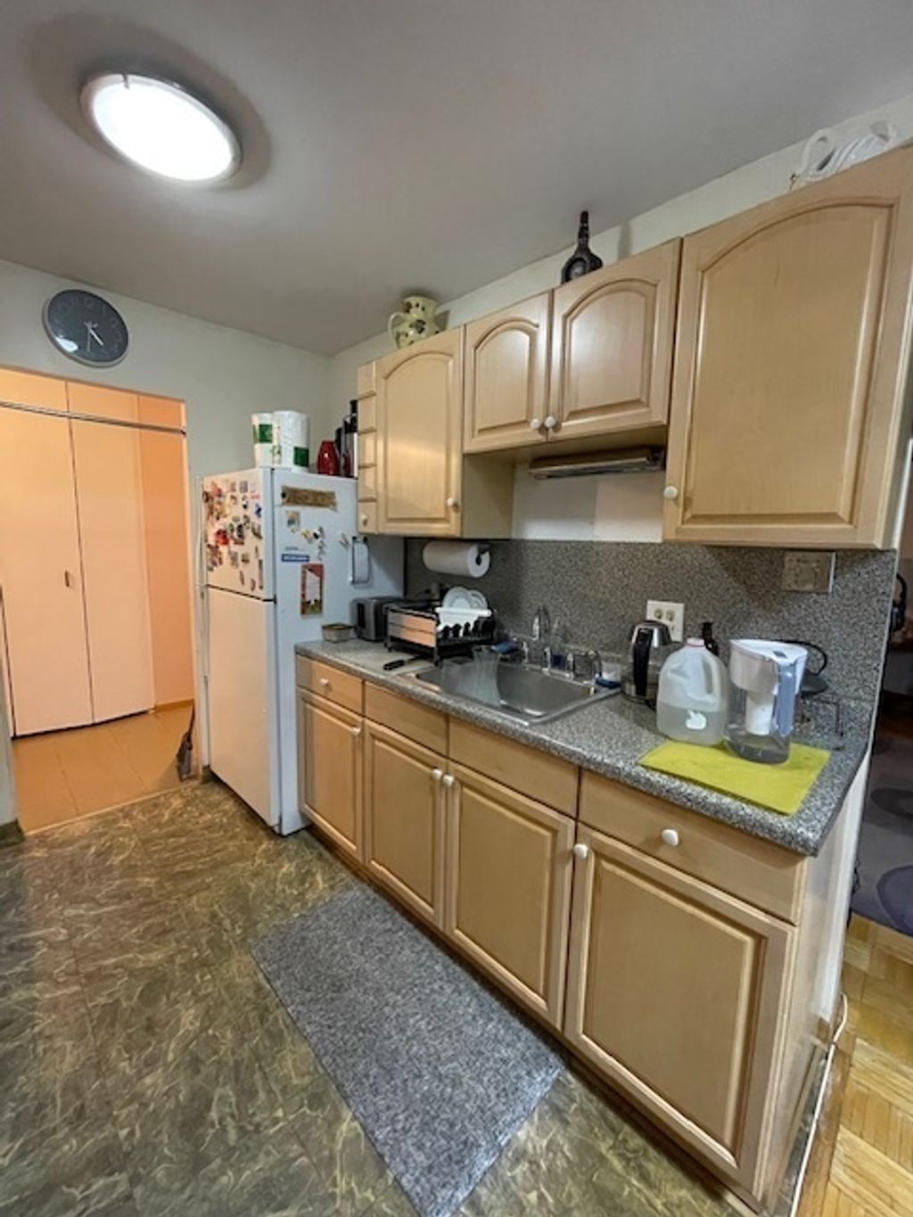 This spacious, east-facing 905 sq. ft. first-floor condo offers comfortable living with a thoughtful layout and long-time ownership pride. The generous living area opens to a private balcony, perfect for morning coffee or relaxing outdoors. Convenience is built right in - this unit is located just a few doors from the floor's laundry room, with a trash chute on every floor for easy daily living. Inside, you'll find a walk-in closet in the entry hall and a large bedroom closet, providing exceptional storage. Residents enjoy fantastic on-site amenities, including a sparkling outdoor pool, party room, bike room, and package-receiving room. Parking options include a heated garage space available to rent for $40/month, exterior parking for $30/month, plus guest parking for visitors. A large, complimentary storage locker is also assigned to the unit. Being sold as-is, this charming condo presents an excellent opportunity to add your personal updates while enjoying a well-established, amenity-rich community.