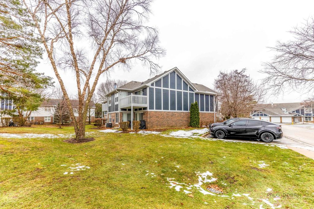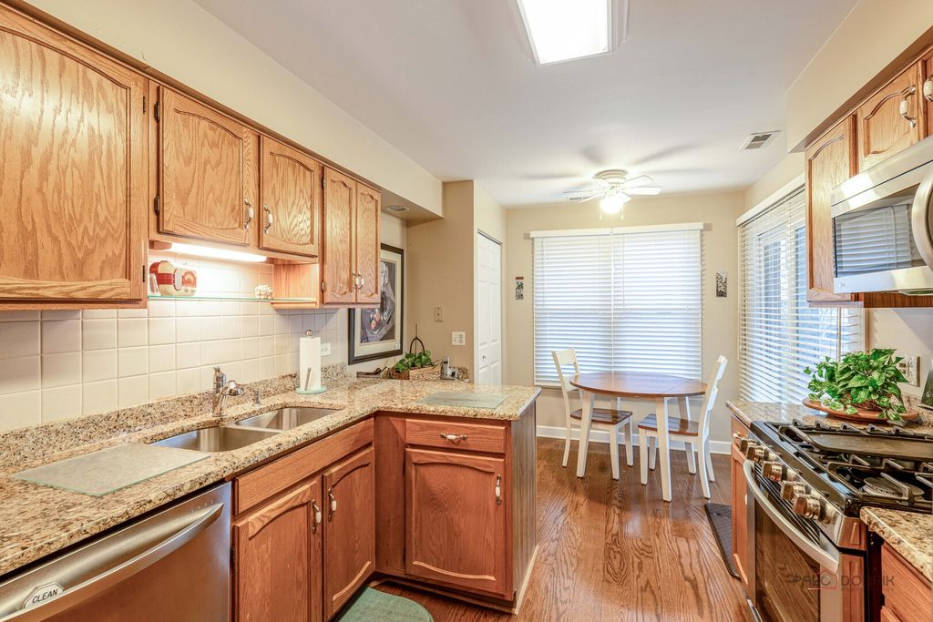 Looking for easy, low-maintenance first-floor living in Lake Park Manor? This Carlton Model condo offers 3 bedrooms and 2 full baths with a thoughtful layout designed for comfort and convenience. Just minutes from the outdoor pool, tennis courts, and Big Bear Lake, residents enjoy access to scenic walking and biking trails along with plenty of outdoor recreation. Inside, hardwood flooring leads way into the living and dining room combo, which opens via sliding glass doors to a private patio, perfect for morning coffee, evening relaxation, or casual entertaining. Ready for a bite to eat, head to the eat-in kitchen showcasing granite countertops, stainless steel appliances, abundant cabinet space, a closet pantry, and a sunny breakfast area, plus a second sliding door leading directly to the patio for easy indoor-outdoor living. The primary bedroom suite offers a walk-in closet and a private ensuite bath with an extended vanity, providing a peaceful retreat. Two additional bedrooms provide space for guests, a home office, or hobbies, complemented by a second full bath and a convenient laundry/utility room. Additional highlights include a 1-car garage and a prime location close to shopping, dining, schools, Metra access, and everyday conveniences. Schedule your showing today!