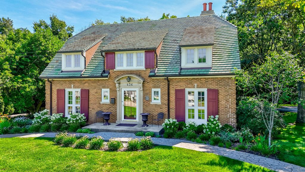 Introducing Oak Lodge, one of Ottawa's most recognizable and admired residences. This stately English Tudor offers three bedrooms and two and a half baths, artfully balancing historic character with curated modern improvements. Tucked away on a private .66-acre setting, the home is framed by a circular drive, mature landscaping, and glowing gas lanterns that set an unforgettable first impression. An 11x20 screened-in porch provides a peaceful, fully private retreat overlooking a wooded ravine, where the gentle sound of a flowing creek creates a true sense of escape. Classic brick construction, a clay tile roof (circa 2017), copper gutters, and a graceful circular walkway speak to the home's architectural pedigree. Inside, the layout is both elegant and livable, featuring formal living and dining rooms, a spacious family room, and a beautifully updated kitchen designed for everyday function and entertaining alike. Custom cabinetry, granite countertops, a peninsula with seating, wet bar, and stainless JENN-AIR appliances complete the space. Original details remain thoughtfully preserved throughout, including French doors, hardwood flooring, a wood-burning fireplace, and a hand-painted dining room ceiling that adds one-of-a-kind character. The upper level offers three generously sized bedrooms and two full bathrooms, all with hardwood floors and walk-in closets. Recent improvements include a renovated circular driveway (2019), Pella windows, updated electrical (2020), refinished hardwood floors, added functioning gas lanterns at the front and rear of the home, new HVAC in 2024, a full lawn irrigation system, and a natural gas grill hookup on the rear patio. A full unfinished basement provides ample storage and laundry space, offering flexibility for future use. With its rare combination of architectural distinction, thoughtful updates, and a setting that feels like a private nature preserve, Oak Lodge remains one of Ottawa's most sought-after homes-timeless, refined, and truly exceptional.