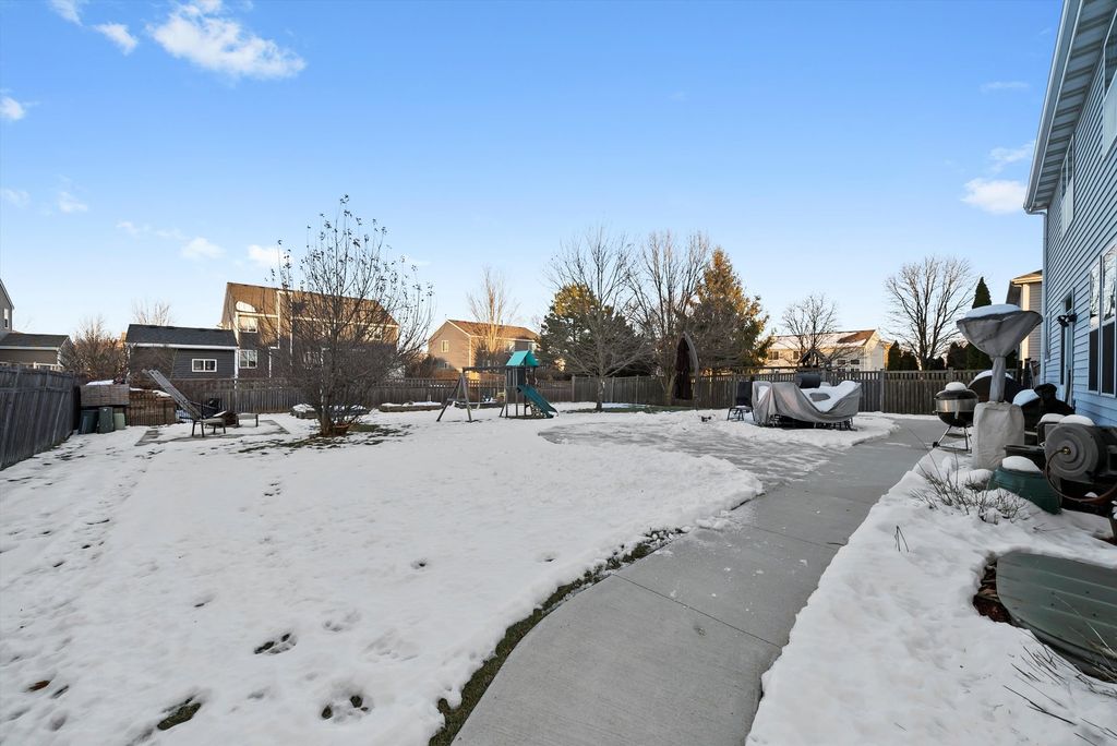Welcome to your best holiday gift-a beautiful 4-bedroom, 3.5-bathroom home in desirable Plainfield! Upon entry, you are greeted by an impressive two-story foyer and living room. The formal dining room is perfect for hosting family and friends. The large kitchen with a center island overlooks the enormous family room, complete with a cozy wood-burning fireplace. Upstairs, the large primary bedroom features a fireplace, an attached ensuite bathroom with a separate shower and tub, and a full walk-in closet with an upgraded system installed by Closets by Design within the past five years. The second floor also includes an additional 3 large bedrooms and a Jack and Jill bathroom. The fully finished basement is an entertainer's dream, complete with a wet bar, a full bathroom, a custom home gym, and ample storage space. Outside, the fenced backyard is perfect for large gatherings and includes an extra concrete slab ready for your shed. When the weather turns cold, enjoy the custom finished, heated 3-car garage, boasting epoxy floors, custom cabinetry, and a pull-down screen. This home has numerous recent upgrades, including the roof and gutters (2025), a three-year-old patio, and an AC coil upgrade (2023). Additional features include solid wood trim and doors throughout, and a dual HVAC system. The location is excellent, just minutes from downtown Plainfield. The subdivision offers its own pool and is near schools. Future plans for downtown Plainfield expansion are just blocks away. Don't wait-schedule your showing today!