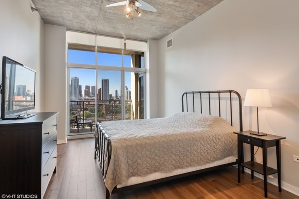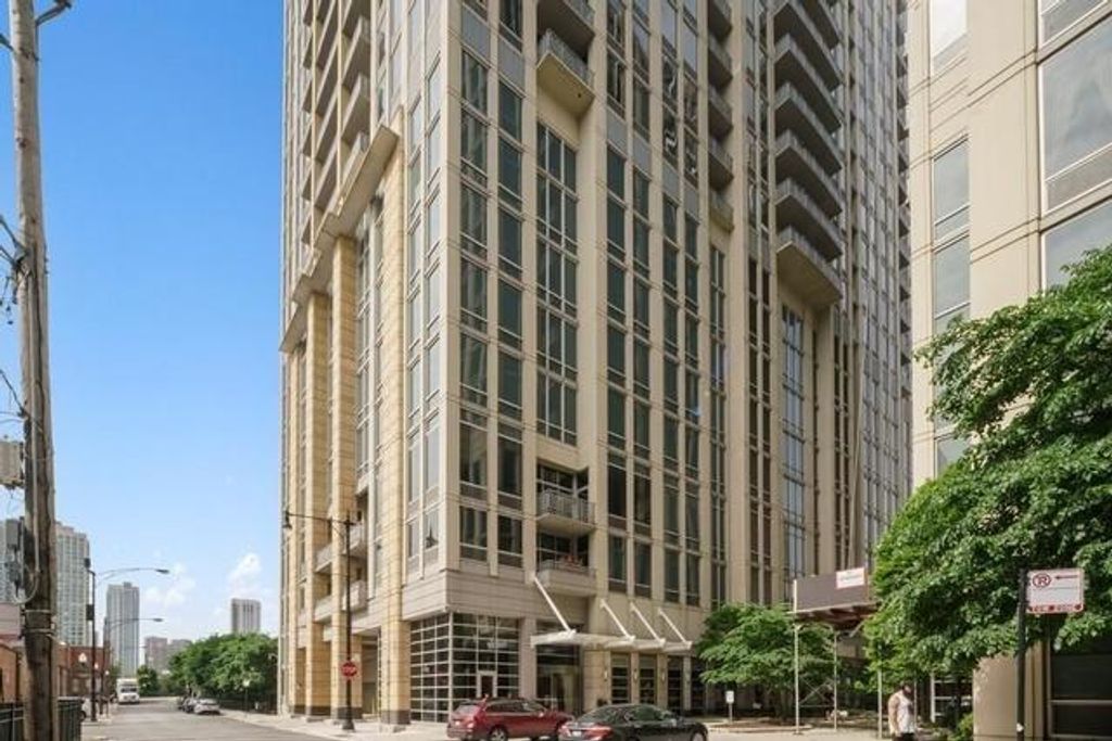 Discover this beautiful 2-bed, 2-bath condo with stunning, south-facing views of the city, river, and sunsets from your private balcony. Located along the River Walk, this home features elegant engineered hardwood floors, stainless steel appliances, kitchen island, and an in-unit washer/dryer. Spacious primary bedroom with bath featuring double bowl sink and separate shower. Ample professionally organized closets. Indoor garage parking additional to be sold with the unit. Separate storage unit included. Building offers 24 hour door staff, professional on site management and a fitness center. River Walk, Dog Park, Erie Cafe, Obelix, and Water Taxi are just steps away in vibrant River North. Enjoy easy access to I-90/94, CTA 66 and 70 buses, and a quick ten-minute walk to the Chicago Brown Line. Investor Friendly! Virtual tour available. Don't miss this gem!