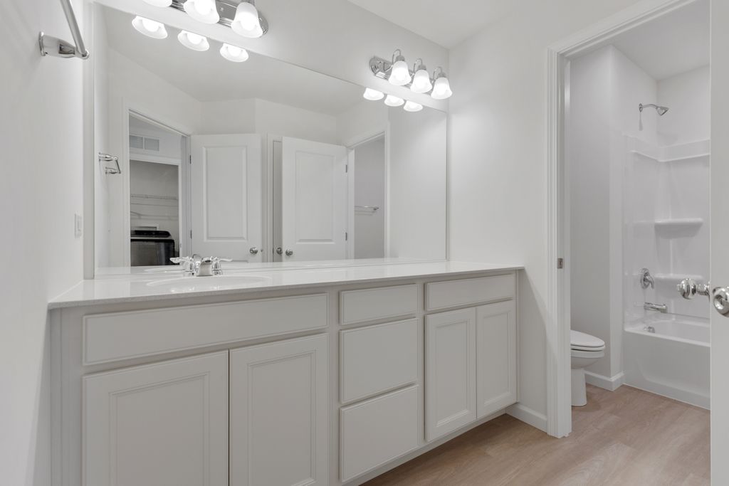 Relocation Sale- Quick Move in opportunity | 5 bedrooms and 3.1 Baths | 3161 sqft Willwood model | Pulte Built | BRONK FARM | Brand new home with TONS of upgrades! North West facing | Available immediately with NO WAITING! PREMIUM KEY LOT with elevation and a desired layout high ceilings and tremendous sunlight! Extra masonry and brickwork on the side of home required for this key lot. Beautiful upgraded wide plank flooring. Main level has a dedicated In-Law suite with a private bedroom and bathroom separate from a half bath powder room. Additional upgrades like windows added in the gathering room and flex room, door added in the flex room and more. Stunning kitchen with level 3 white cabinets with crown molding, built in appliances, level 3 quartz countertops with a dedicated exhaust vent. RARE! 9 foot deep pour basement with rough in bathroom. Placement of pillars allows for a dynamic and open basement with unlimited potential! 2nd floor loft in the center of the layout creates for perfect gathering space. Master bathroom owners bath 3 - has a separate tub and shower with frameless shower door. 7 ceiling fan pre-wiring done. 20+ led can lights added. Every bedroom has fantastic walk in closet space. 5 110V outlets added to the home. Utility sink added to the 2nd floor laundry room with high end faucet. Iron spindles, upgraded flooring, DUAL ZONE Hvac system, humidifier, upgraded water heater, smart garage system and so much more. COMPLETE home and comes with almost every single upgrade a buyer can want! Home is part of a brand new club house complex with parks, Stunning pool, walking trails and so much more. One of the better layouts in the Pulte portfolio. Nearly $130,000 in upgrades in this home!