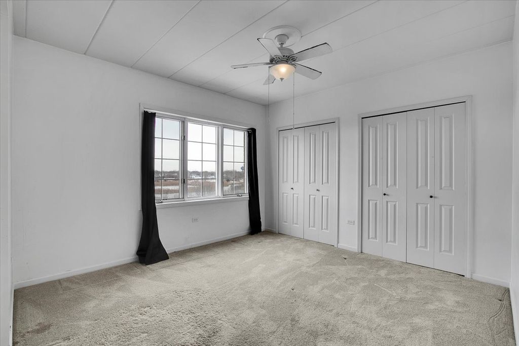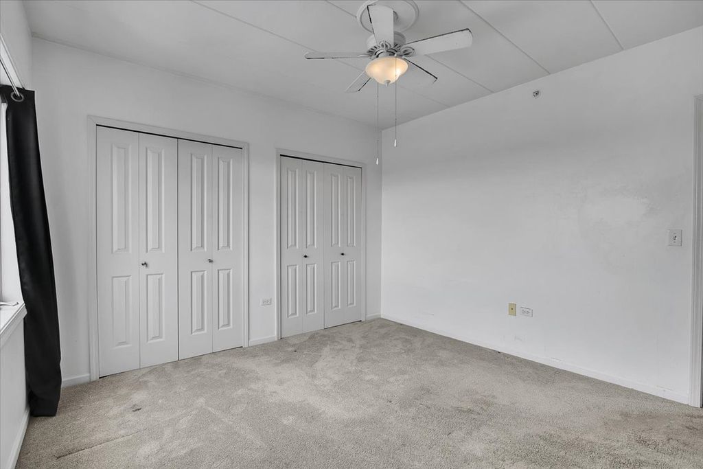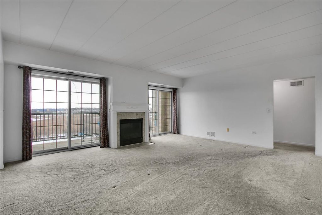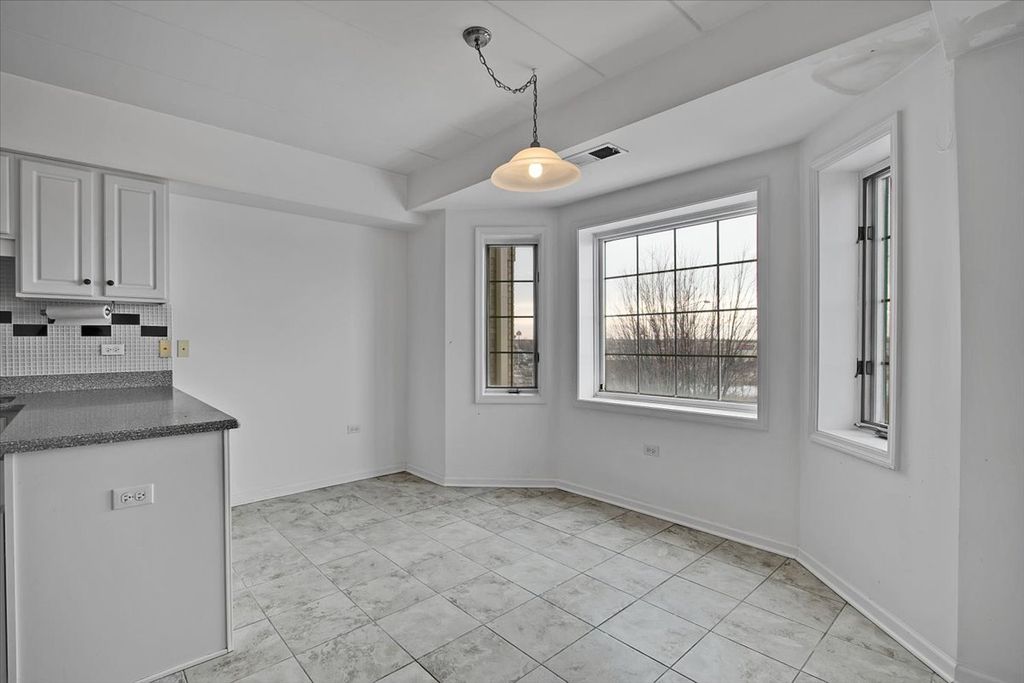Rarely available condo in the highly desirable Farmingdale Village community. This bright, open home offers a spacious layout with an oversized dining area that can easily function as a home office or flexible living space. The living room features a cozy fireplace and large sliding glass doors that open to the balcony, filling the home with natural light. The eat-in galley kitchen includes white cabinetry, stainless steel appliances, and a practical layout for everyday living. The primary bedroom features a walk-in closet and a private en-suite full bathroom, while multiple walk-in closets throughout the unit provide excellent storage. Located in an elevator building with heated indoor garage parking. Convenient access to I-55 and I-355 and close to shopping, dining, and everyday amenities. Property is being sold as-is.