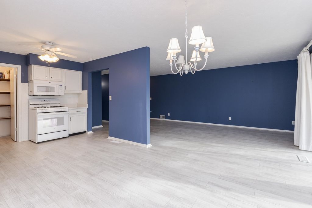 Gorgeously updated main-level unit in desirable Brandywine Condominiums. Home features two bedrooms and two full bathrooms. The open, bright kitchen offers updated appliances, white cabinetry, and a walk-in pantry. A spacious family room seamlessly connects to the dining area, creating an inviting space for everyday living and entertaining. Enjoy the convenience of a walk-in laundry room complete with washer and dryer. Step outside to a covered patio overlooking a private backyard and peaceful green space. The home also includes a one-car attached garage with additional locked storage. *HVAC new in 2020, some updated appliances, newer blinds, updated all flooring 2021, white kitchen 2021, freshly painted 2021, comfort height toilets, bathroom updates 2021* Information deemed reliable but not guaranteed......