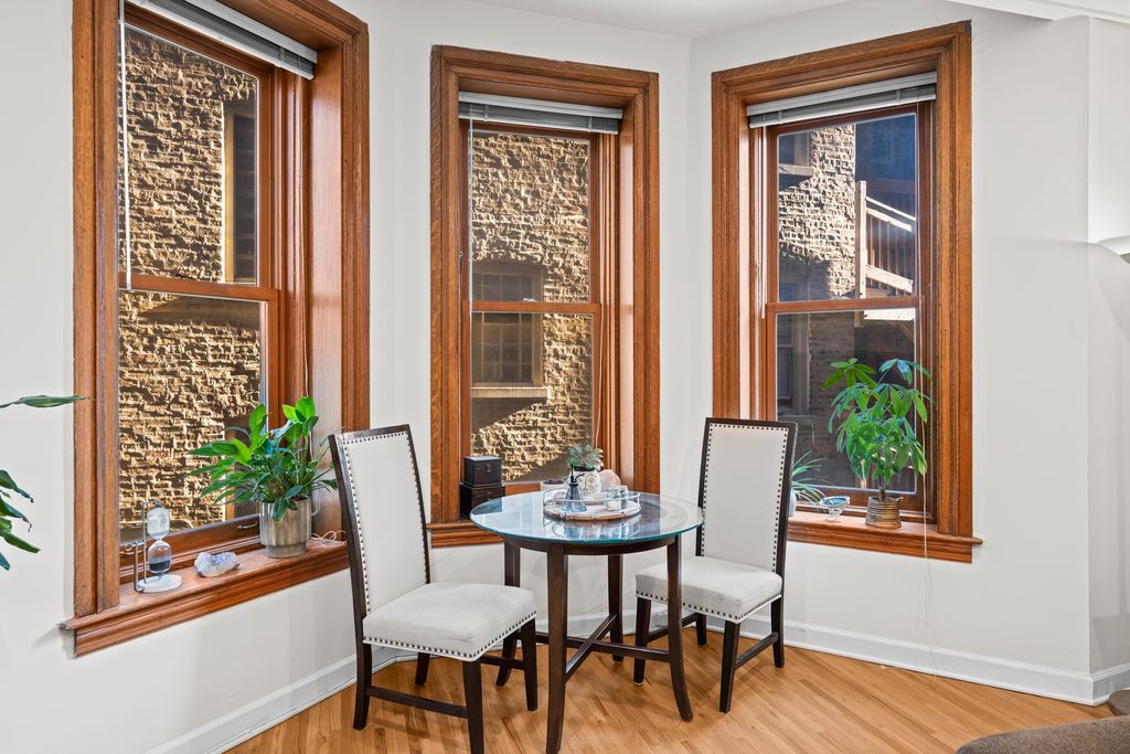 Spacious 2 Bedroom / 1 Bath condo with fully enclosed bedrooms in the landmarked Commodore building. This home features a large living and dining room highlighted by refinished hardwood floors and charming bay windows. The updated kitchen showcases sleek modern teak cabinetry, granite countertops, and a new tile backsplash. A desirable split-bedroom layout offers privacy, with bedrooms separated by an updated bath featuring ceramic tile and a pedestal sink. Additional highlights include an in-unit laundry room with full-size side-by-side washer and dryer, extra storage, and an additional large storage unit included. Outdoor parking space #12 (located across the street at Greenbrier) is available for purchase for $30,000. The Commodore has been fully updated to meet Chicago building standards and offers in-unit sprinklers, smoke and fire detectors, and an association-monitored camera system. Building amenities include a bike room, secure package room, mail room, and on site property management. Pet-friendly and investor-friendly building. Unbeatable location within walking distance to restaurants, public transportation, shopping, grocery stores, and Lake Michigan.