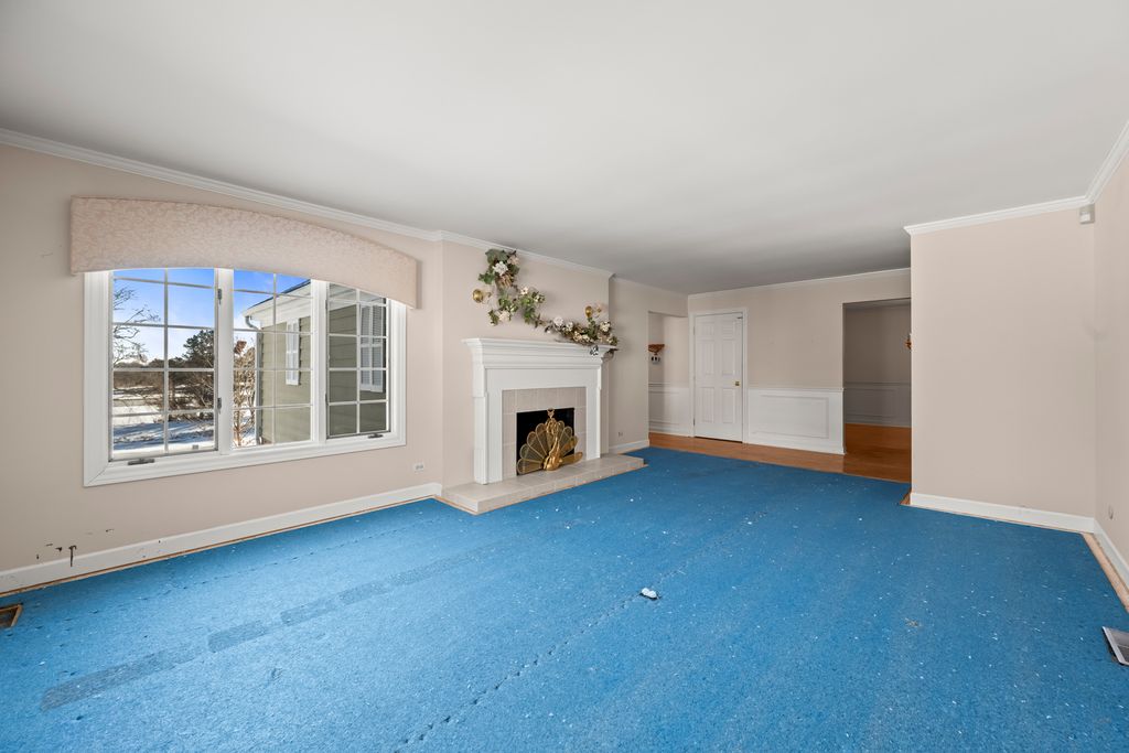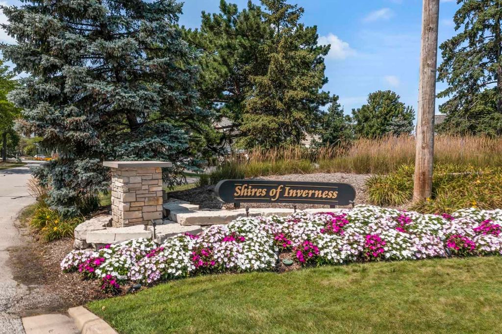 Excellent opportunity! Bring your decorating ideas to this spacious ranch townhome with pond views in prestigious Shires of Inverness! 2 huge bedrooms on main level plus gracious living and dining rooms and kitchen with room for table or island. Walk-out lower level includes huge family room, den area, a full bath, laundry room and plenty of storage space. A first floor closet is also plumbed for laundry. High ceilings, hardwood floors, custom moldings and 2 fireplaces add to the ambience. Every room seems super-sized! Large attached 2 car garage plus guest parking. Carpeting in some rooms has been removed so blue pad shows. Shires has outdoor pool, tennis/pickleball courts & clubhouse. Near shopping & parks with easy access to train, Rt 53 and tollroad. Beautiful area!
