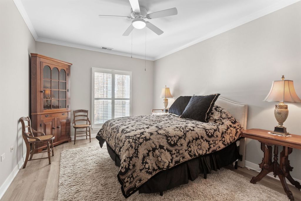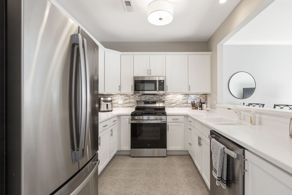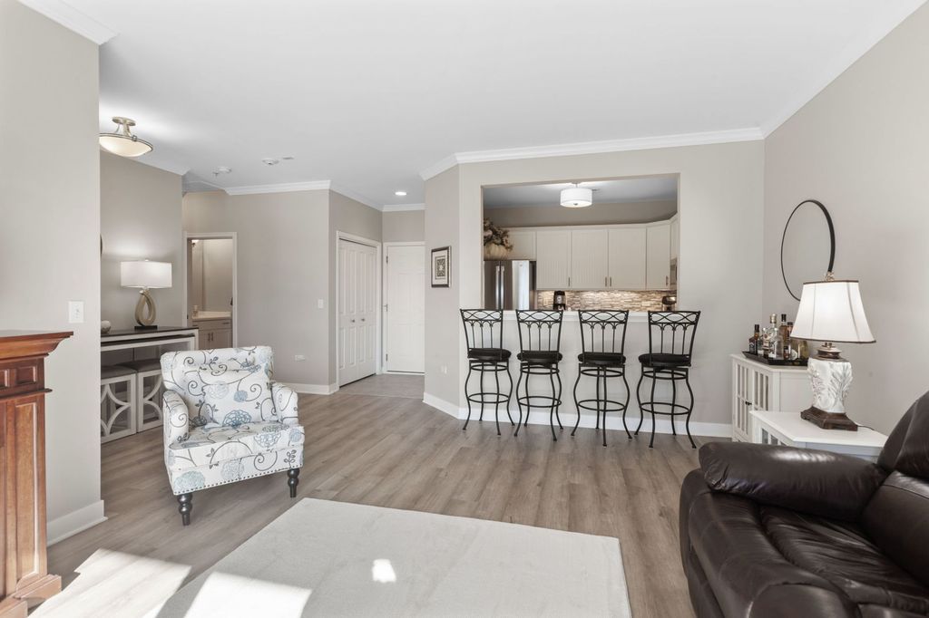 Beautifully maintained 2-bedroom, 2-bath condo in the sought-after 55+ Crossings at Geneva community! This bright and inviting home is filled with amazing natural light and features a stunning kitchen with all brand-new (11/2025) stainless steel appliances including a stove, refrigerator, dishwasher, and microwave, complemented by a stylish backsplash and a pass-through breakfast bar window. Gorgeous 2023 laminate flooring flows seamlessly throughout, and both bedrooms include elegant plantation shutters. The spacious primary suite offers a large bathroom with a soaking tub and separate shower, along with a custom-designed walk-in closet, while the second bedroom features built-in shelving and desk space-perfect as a guest room or home office. Enjoy peaceful, scenic views from your private balcony with no neighboring units behind. Additional highlights include a newer A/C unit (2023), in-unit washer and dryer, secured building entrance, extra storage down the hall, and one heated garage parking space. The Crossings at Geneva provides a true sense of community with a clubhouse for social gatherings, book clubs, coffee hours, holiday parties, and monthly outings, as well as beautifully maintained grounds with a relaxing courtyard. Conveniently located near Northwestern Delnor Hospital, Geneva Commons shopping and dining, and Randall Road. HOA covers water, parking, clubhouse access, exterior maintenance, lawn care, and snow removal. Pet-friendly community-everything about this condo is move-in ready, so don't wait to make this beautiful home yours today!