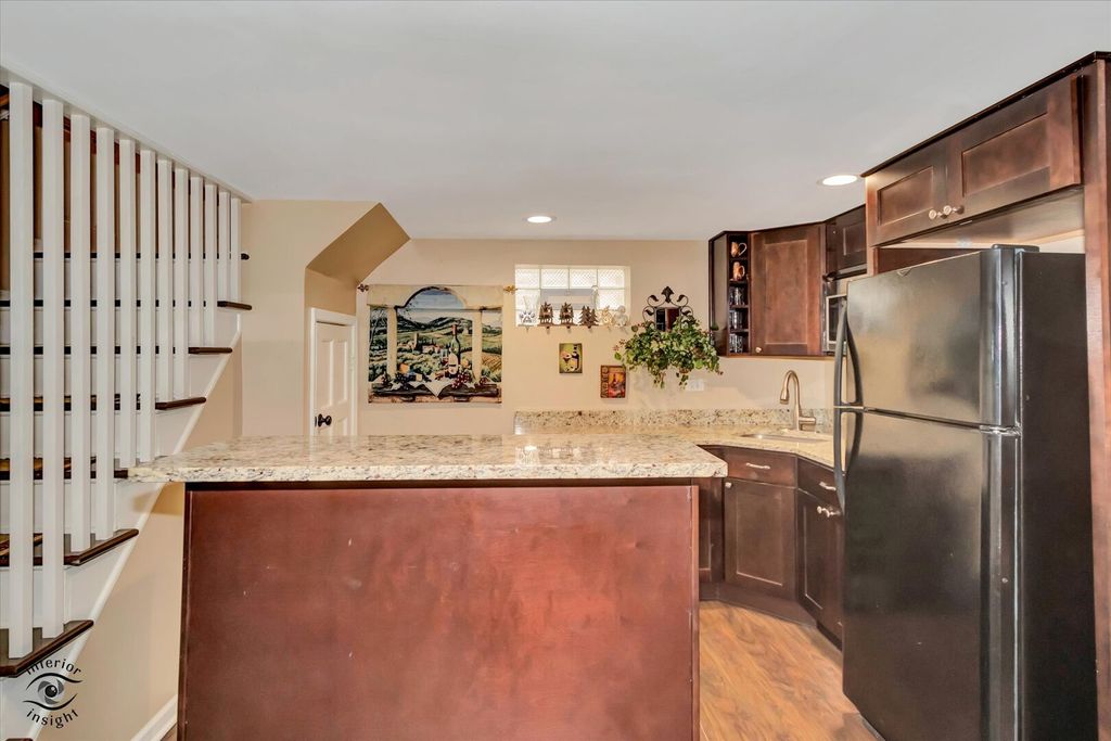 Immaculate & meticulously maintained classic Mt Greenwood home in sought-after location. Tons of living space & loads of upgrades. Formal living room features hardwood floors, recessed lighting & ceiling fan. Huge updated eat-in kitchen features Corian counters, custom oak cabinetry, ceramic floor, newer stainless appliances (2019), island, pendant lighting, 2 pantries, & beautiful glass backsplash. Great flexibility with 2 bedrooms and full remodeled bath on main level. 2nd story addition features 3 additional bedrooms, newer wood flooring (2019), open storage area, & fantastic master suite with walk-in-closet, glass barn door (2019), & private luxury bath w/walk-in shower and whirlpool tub. Full beautifully finished basement (2015) features family room with stone fireplace & vinyl wood flooring, kitchenette w/granite counters & wine fridge, & office or workout room. Solid wood six panel doors, French drain tile in basement (2015), WICs throughout, sump pump with battery backup (2019), main level hardwood refinished (2020), upper level laundry hook up, newer front door (2020), 2 newer screen doors (2020), newer air conditioning unit (2020), newer furnace upstairs (2023), all windows updated & working, newer tankless hot water heater (2024), & new roof (2022)! Exterior space includes newer concrete patio, heated pool w/newer liner (2023), beautiful custom deck (2015), fully fenced yard, & 1 car attached garage with newer epoxy floor (2019). The attention to detail and impressive finishes and maintenance in this home are superior- you have to see it to believe it! This home is a rare find in an amazing location!