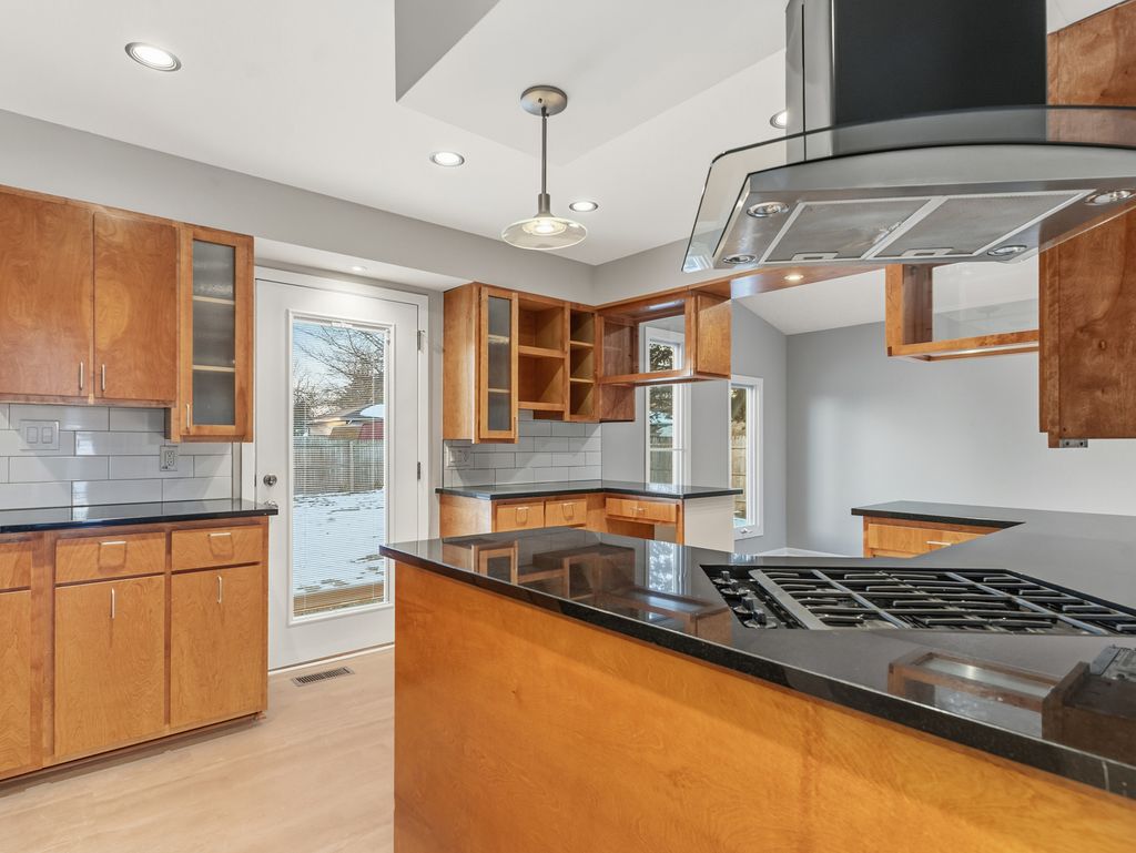 Picture perfect 3 bedroom, 2 bath split level on a quiet Blackhawk Drive. Spectacular curb appeal with large driveway, swing gate to yard and large lot. White brick front elevation! Refinished hardwood flooring, repainted interior. Vaulted ceiling in the living and dining room. Recently remodeled kitchen has newer cabinetry/granite countertops/cooktop w/oven hood & some glass cabinetry. Shared primary 14x11 primary bedroom has a wall of closets for your daily wardrobe. Bedroom 2 has a small balcony. Pure entertainment is calling in the lower level family room w/gas fireplace. There's also a 2nd full bathroom (with standup shower), laundry room and storage area. The yard is fully fenced. Walk to schools, parks and downtown Minooka.