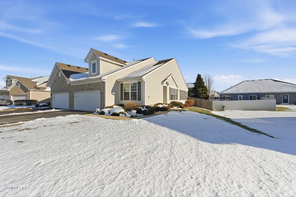 Welcome home to this light-filled duplex ranch nestled on a quiet cul-de-sac with beautiful curb appeal. This move-in-ready home features an inviting, fenced backyard complete with a gazebo-perfect for relaxing or entertaining. Step inside to a bright and airy interior highlighted by cathedral ceilings in the great room, stunning hardwood floors, and an abundance of natural light throughout. The kitchen has been tastefully updated with quartz countertops, a new Quartz sink, upgraded lighting, and modern faucets. Additional recent improvements include fresh paint, new carpet, updated bathroom light fixtures, and stylish lighting throughout the home. A major highlight is the extra-large, full basement, offering endless possibilities for entertainment, additional living space, or storage. New appliances installed this year include a washer, dryer, oven, and dishwasher, adding even more value and convenience. With thoughtful upgrades, impressive space, and a serene setting, this home is truly move-in ready and not to be missed.