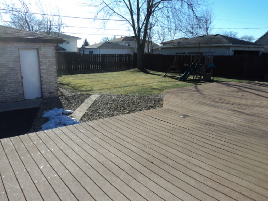 Beautifully rehabbed Brick home. Newer Kitchen, Furnace and AC, Roof. Hardwood floors throughout. Carpet in Family room with Brick wood burning fireplace. Patio doors to deck. Deck is length of house. 2 full baths, 3 bedrooms. One has patio doors to deck. All appliances included with washer and dryer. Oversized garage, 24' x 36' deep. 3 plus cars fit inside. Side drive, nice quite street (dead end) No through traffic. Close to school, shopping, and park. Re-location forces owner to sell. Truly in move-in condition. Yard is large and beautiful lawn. Rear and sides are fenced.