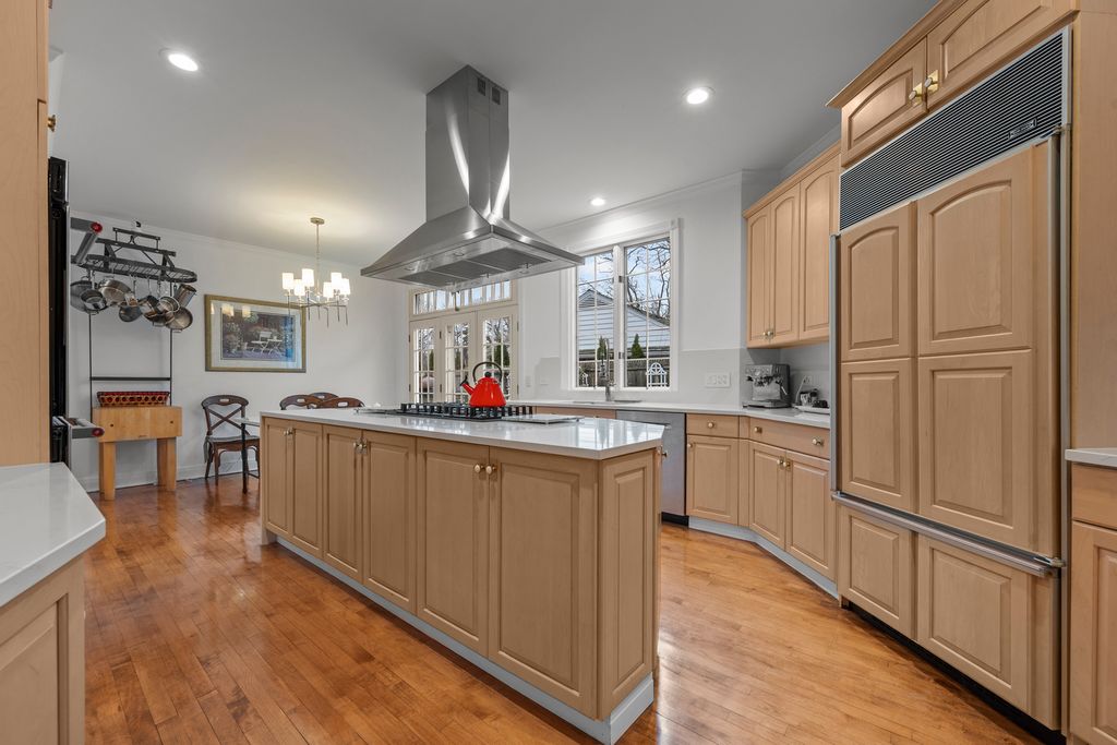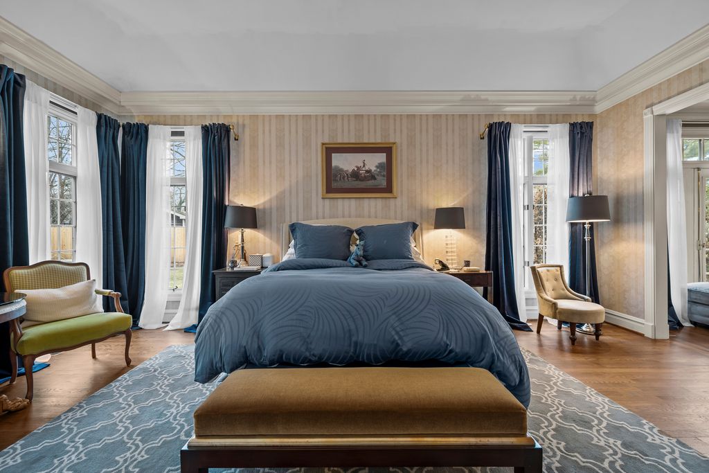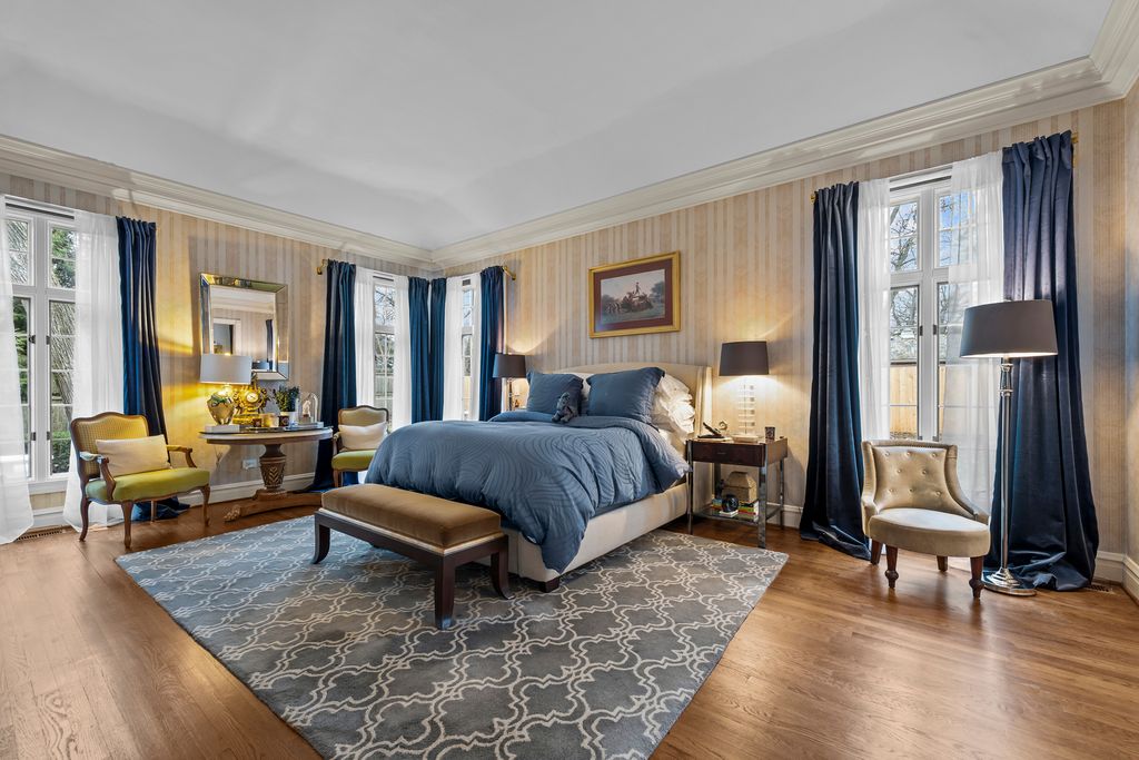 Welcome to 550 King Muir Road-an elegant and highly sought-after French Ranch residence with a classic stucco exterior, seamlessly blending Lake Forest charm with thoughtful, high-end updates. Surrounded by an iron gate and set on .74 acres of meticulously maintained grounds, this home offers exceptional privacy, warmth, and timeless sophistication. Inside, the home is anchored by rich red oak floors throughout, complemented by bamboo flooring in the kitchen. Ten-foot ceilings span most of the home, while the dramatic gallery features soaring 18-foot ceilings-creating a grand yet inviting sense of scale. French doors throughout the residence, accented with elegant brass hardware, enhance the architectural character and allow for seamless indoor-outdoor living. The thoughtfully designed layout offers three bedrooms plus a private office-with the potential to convert into a fourth bedroom-and three and a half bathrooms. The gourmet kitchen is designed for both everyday living and entertaining, featuring a Sub-Zero refrigerator, Bosch appliances, double convection ovens, a newer hood, and an added wine cooler. The main living spaces are rich in character and ambiance, highlighted by three gas fireplaces-located in the primary suite, dining room, and library-along with a wood-burning fireplace in the living room, creating inviting spaces year-round. All bathrooms have been fully renovated, and the primary suite is enhanced with custom California Closets, offering elevated organization and luxury. A newer washer and dryer add everyday convenience, while a security system provides peace of mind. Significant mechanical and structural improvements make this home truly turnkey, including updated furnace, air conditioning, water heater, and humidifier, sump pump and waterproofing with exterior drain tile, and updated electrical and plumbing. The roof has been replaced, and a screened-in veranda offers a serene outdoor retreat overlooking the professionally maintained grounds. Recent enhancements include new gutters and exterior lighting, a resealed driveway, fresh landscaping with ongoing professional maintenance, wood fencing, and a brand-new garage door and opener. And finally-this expansive French Ranch, defined by thoughtfully curated architectural details and refined craftsmanship, offers exceptional character and modern convenience rarely found in today's market. More than a home, it is a private retreat and a timeless Lake Forest residence, ready to be enjoyed and cherished for years to come.