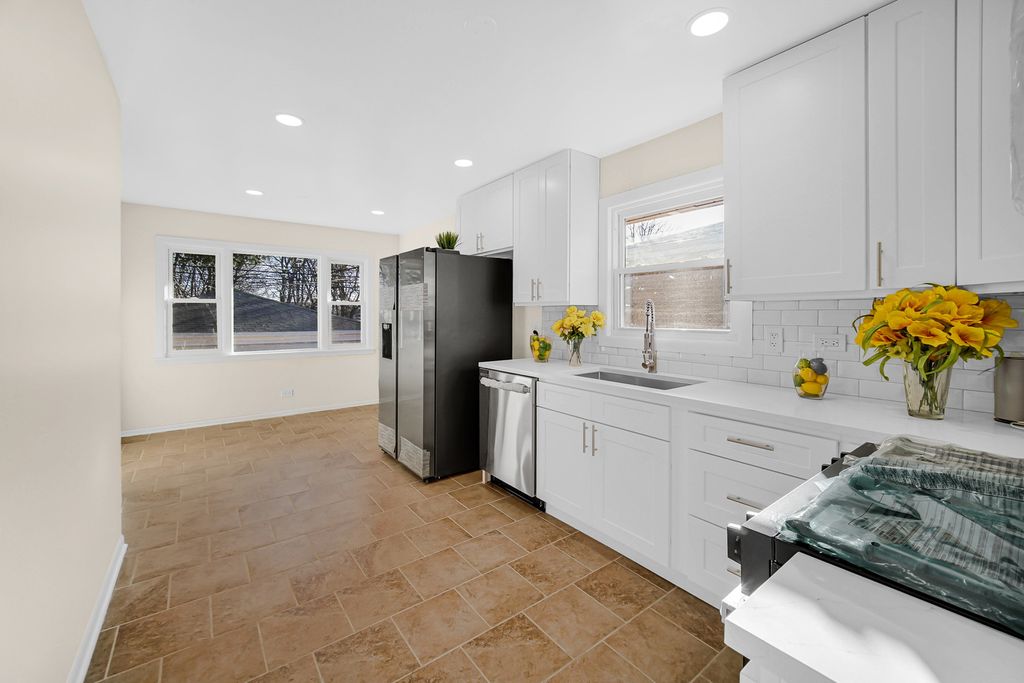 Well-maintained and truly move-in ready, this beautiful home offers 4 generously sized bedrooms, 2 full baths, with beautifully polished hardwood floors throughout. Find comfort and relaxation in the spacious living room and dining room area. Cook the best meals or entertain in the beautiful kitchen that offers exceptional 42" cabinetry and gorgeous quartz countertops. The basement space is perfect for extra living or entertaining. Enjoy the spacious 2-car garage, side drive and fenced yard - perfect for entertaining! A brand-new roof adds peace of mind-just unpack and enjoy! Room sizes are estimates. Video monitoring and recording on premises.