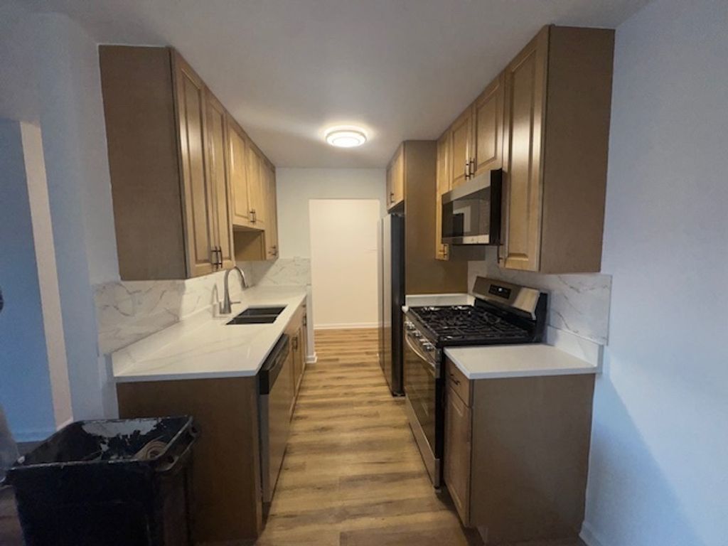 Move right into this beautifully renovated 2nd-floor 1-bedroom, 1-bath condo offering modern finishes and a bright, open layout. Brand-new wood laminate flooring flows throughout the unit, complementing the spacious and sun-filled living room with sliding doors that lead to a private balcony-perfect for relaxing or entertaining. A large, dining room provides excellent space for hosting and everyday living. The updated kitchen features new granite countertops, sleek stainless steel appliances, and ample cabinetry. The completely renovated bathroom showcases elegant marble finishes and contemporary design. The unit also offers abundant storage and generous closet space throughout. Well-maintained building amenities include a common area laundry room, outdoor pool and patio, party room, exercise room, and additional storage. On-site laundry is available, and underground parking may be rented with a waitlist. A wonderful opportunity to enjoy comfortable, stylish living in a convenient setting.