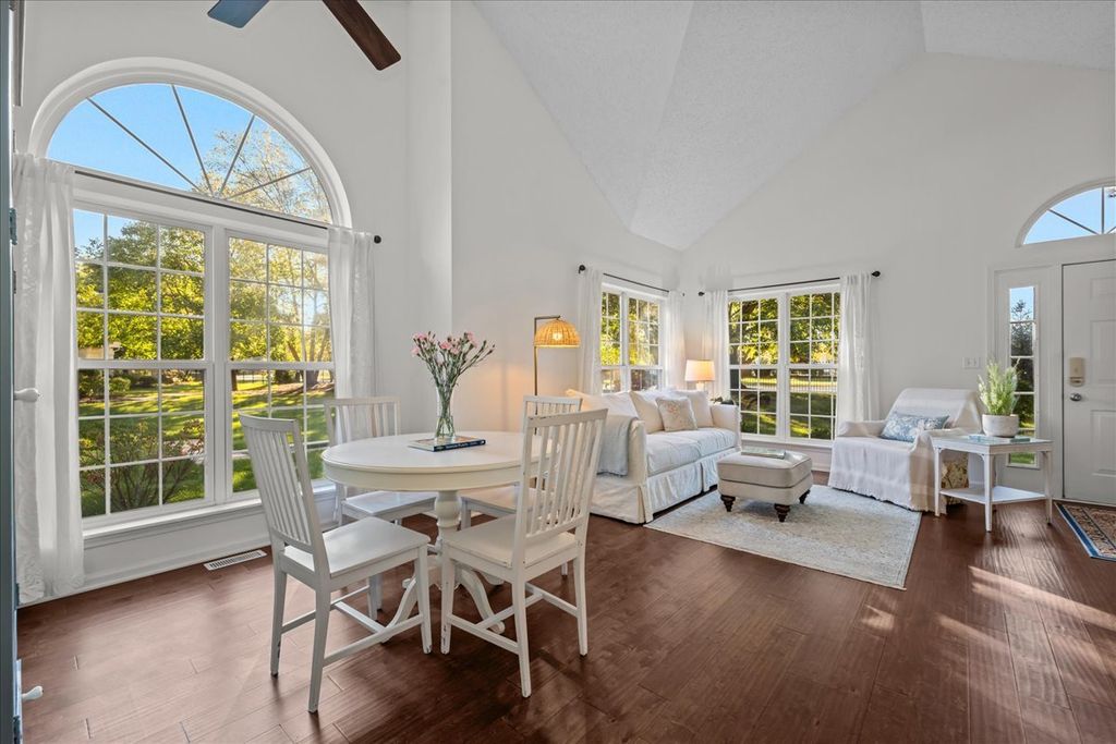 Welcome home to this stunning end unit townhome, perfectly situated to offer both style and comfort. Step inside to find freshly painted interiors and hardwood floors throughout that create a warm, inviting atmosphere. The home's elegant design is highlighted by tasteful, modern decor and an abundance of natural light flowing through every room. Sunny, bright kitchen includes ample space for cooking and a separate eating area with views of the beautiful yard. First floor laundry, large bedroom and a full bath provide first floor living. Continue to the second floor via the newly updated staircase with hardwood flooring, and freshly painted stringers and railing. Fall in love with the cozy loft area, perfect for office space or just relaxing. The spacious primary bedroom includes a remodeled primary bathroom (2025), a true showstopper-featuring high-end finishes which include marble floors and shower walls, quartz top vanity, and modern lighting creating a luxurious spa-like feel. Every detail has been thoughtfully chosen to provide both beauty and function. With its end-unit location, you'll enjoy extra privacy, additional windows, and peaceful outdoor views. This move-in-ready home offers a perfect blend of comfort, sophistication, and modern updates-ideal for today's lifestyle. Close to shopping, schools and the Fox River!