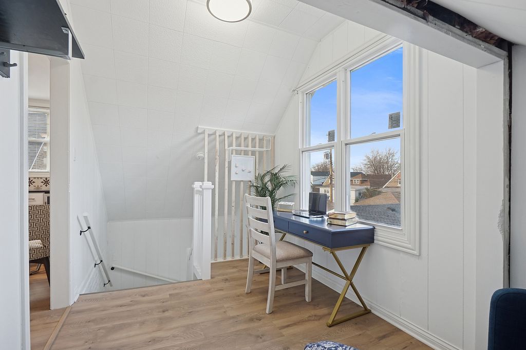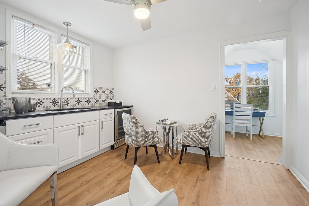 Beautifully remodeled 3-level home designed for today's lifestyle! Enjoy an open-concept living and dining area with fresh paint and luxury vinyl flooring. Main Level: Large bedroom, updated full bath, and a spacious eat-in kitchen with custom 42" cabinets, Corian countertops, stunning backsplash, and stainless steel appliances. Upper Level: Features three bedrooms, a full bath, and two versatile living areas. One is a comfortable family gathering space, perfect for relaxing or movie nights. The second includes a mini fridge and beverage cooler, with enough space for a table or game setup-ideal for entertaining, casual dining, or a fun family game room. A private office space completes this level, providing a quiet retreat for work or study. Lower Level: Partial finished and versatile, ideal for a home gym, kid zone, or recreation room, plus another full bath. Additional highlights include newer vinyl windows, roof, furnace, hot water tank, and updated electrical system. Step outside to a large fenced yard with patio and a 21/2-car garage-perfect for entertaining and everyday living. Move-in ready and waiting for you to call it home!